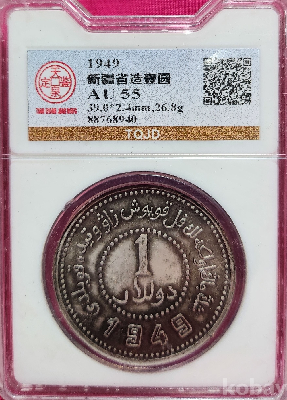 1949 년 큐알코드(QR CODE)가 함께하는 은색 광서원보 (光緖元寶)' 화패로 밀봉된 상태입니다,