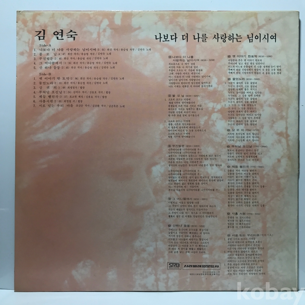 LP 34,810-63 김연숙 - 나보다 더 나를 사랑하는 님이시여 . ` 82 서라벌 자켓 EX+ 알판 EX+