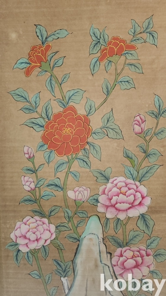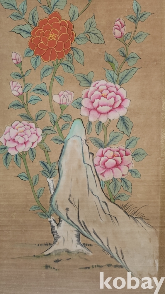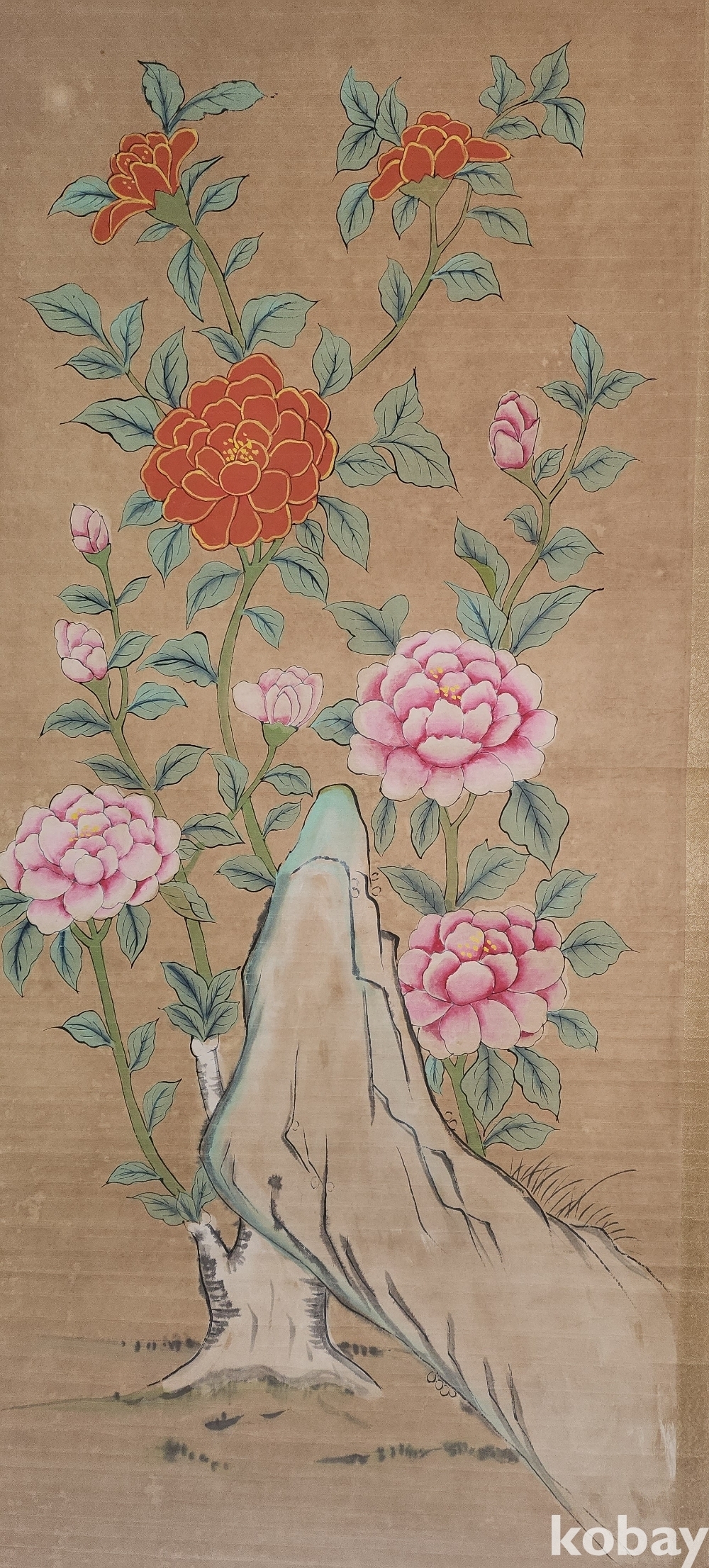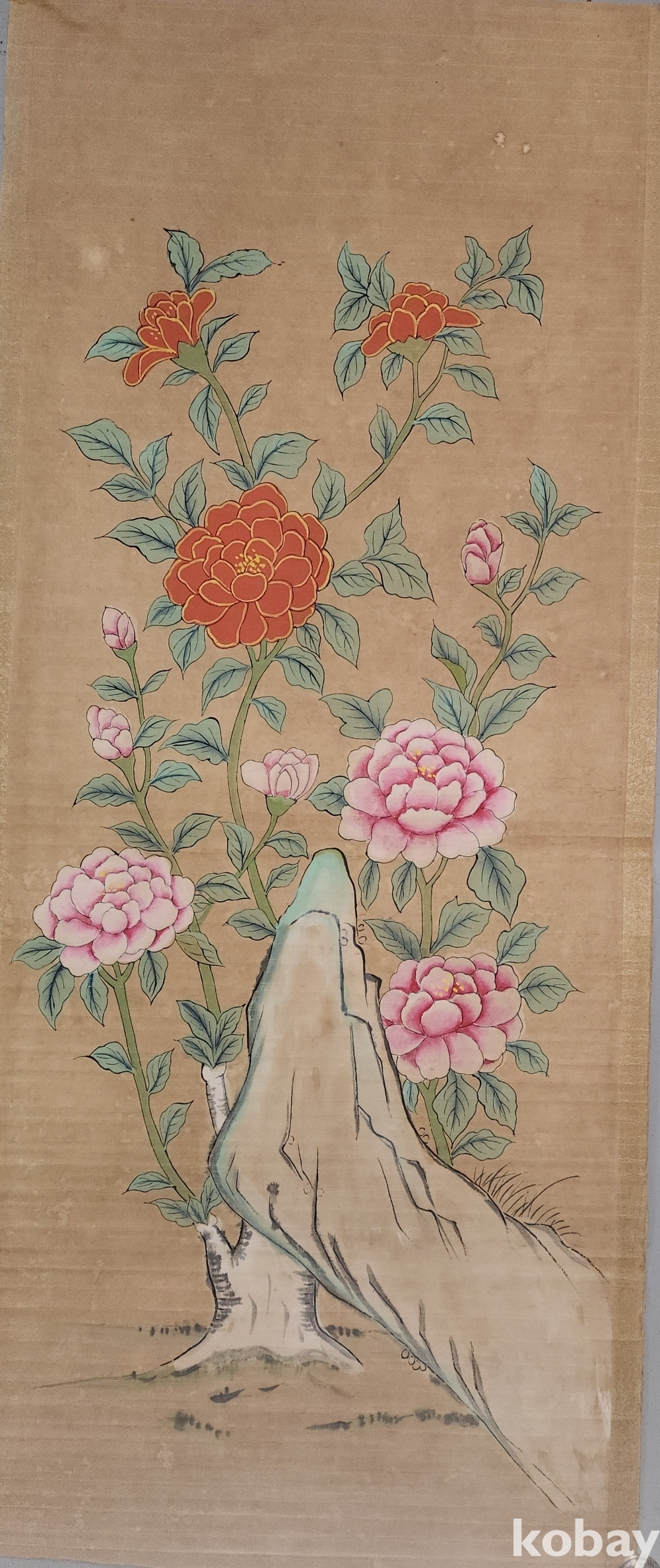 구한말 연대 갖춘 괴석 ( 怪石) 에 목단화 (牧丹花) 그림입니다,