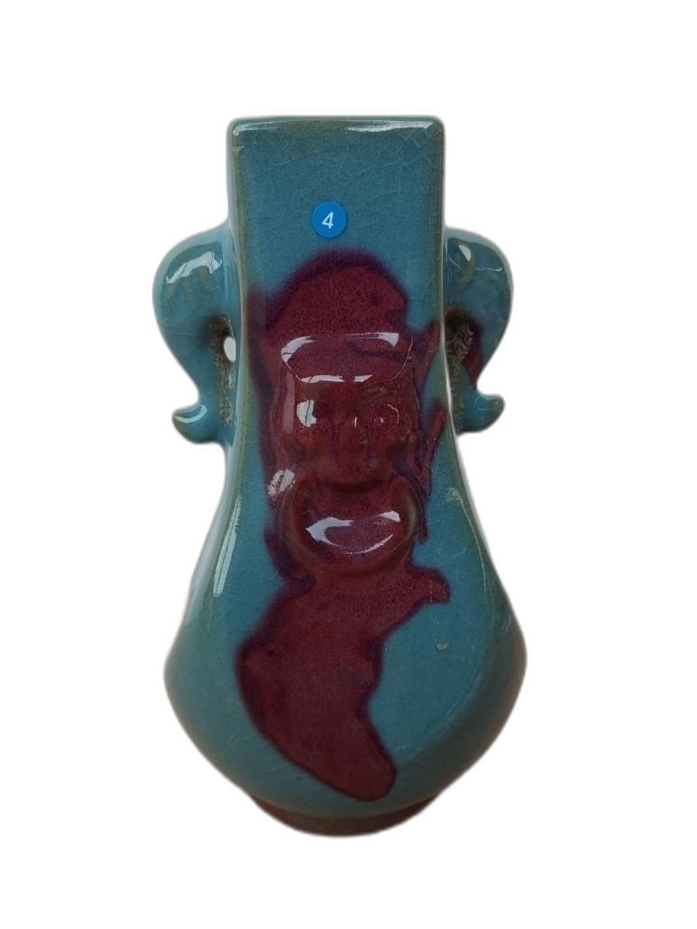 코끼리 모양의 귀가 달린 도자기 입니다.