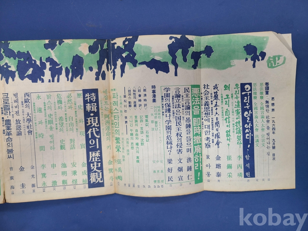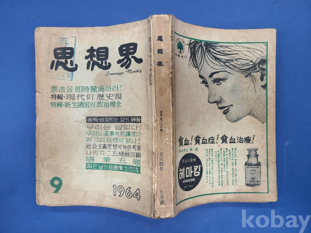 사상계(1964년 9월호)/사상계사,374쪽/전체적으로 헐었고, 얼룩있음