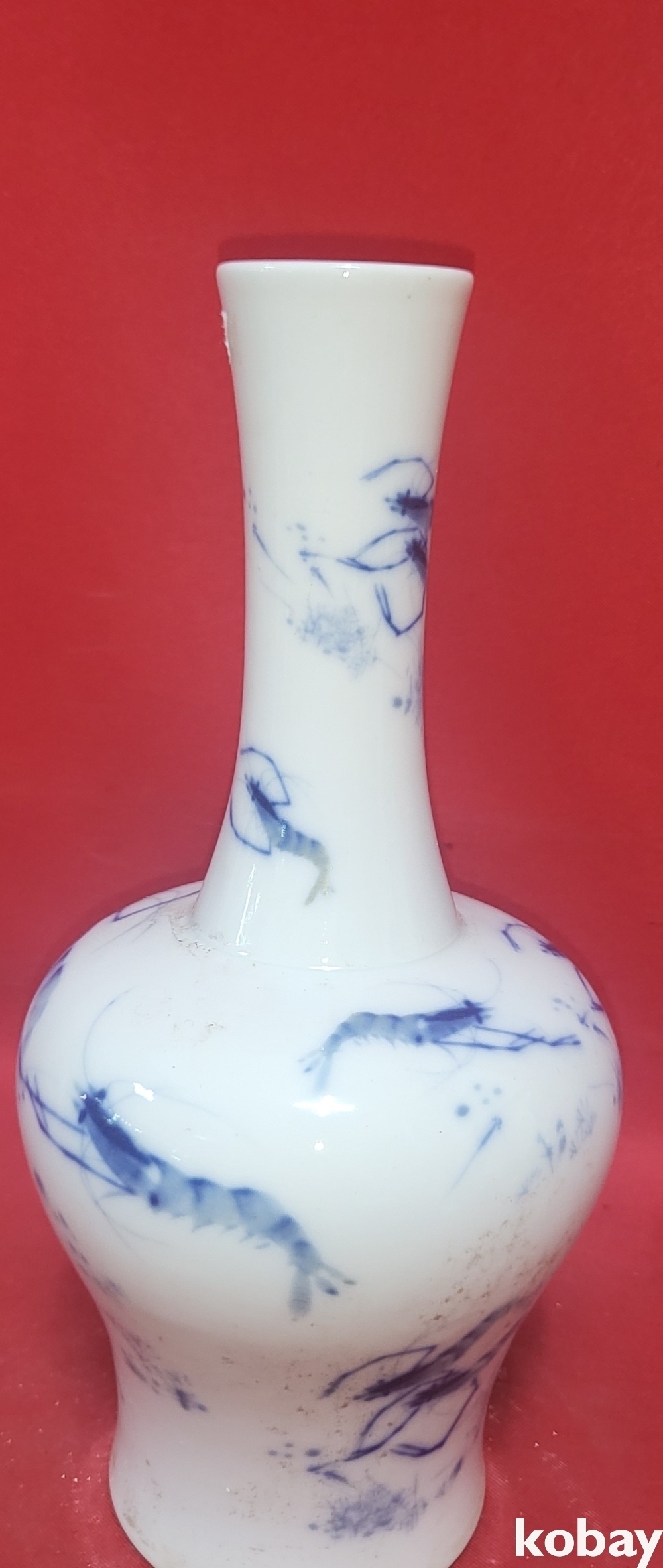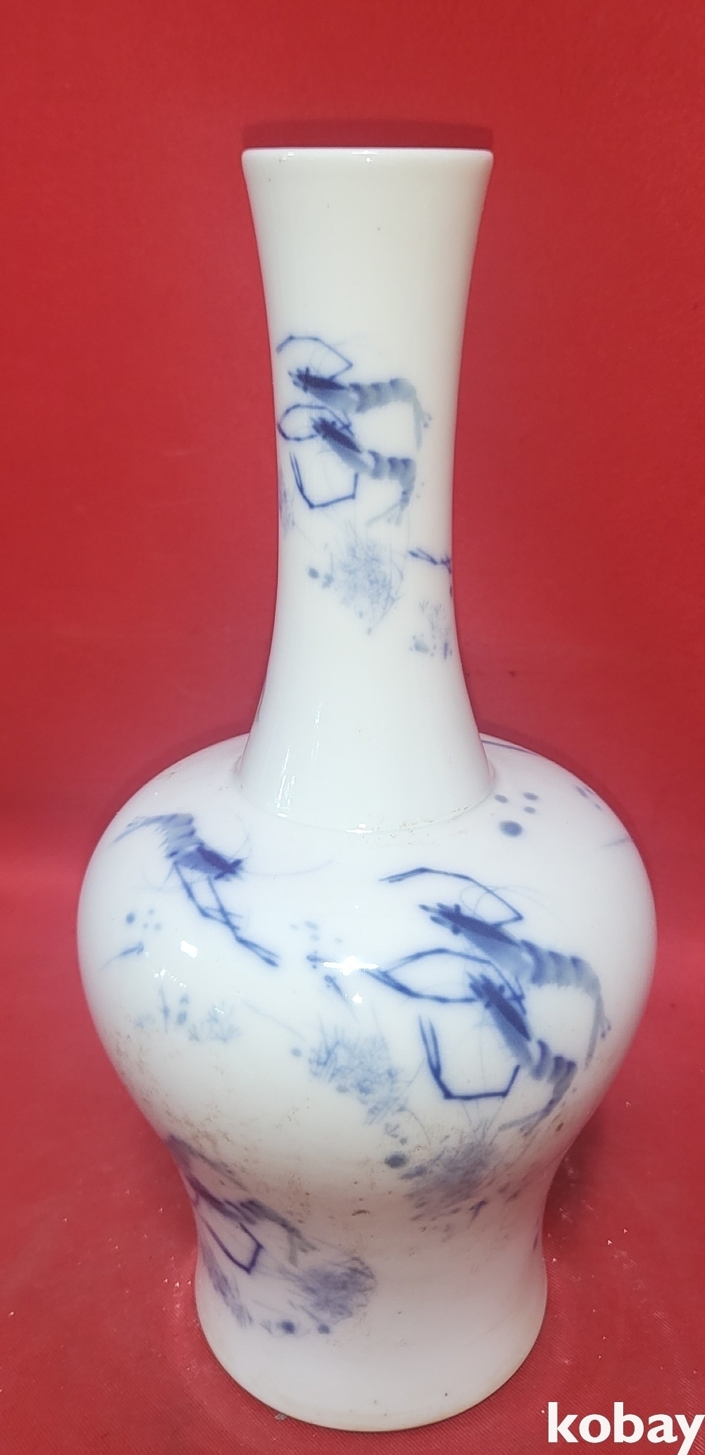 홍헌연제 관지 청화 새우문양 병입니다,