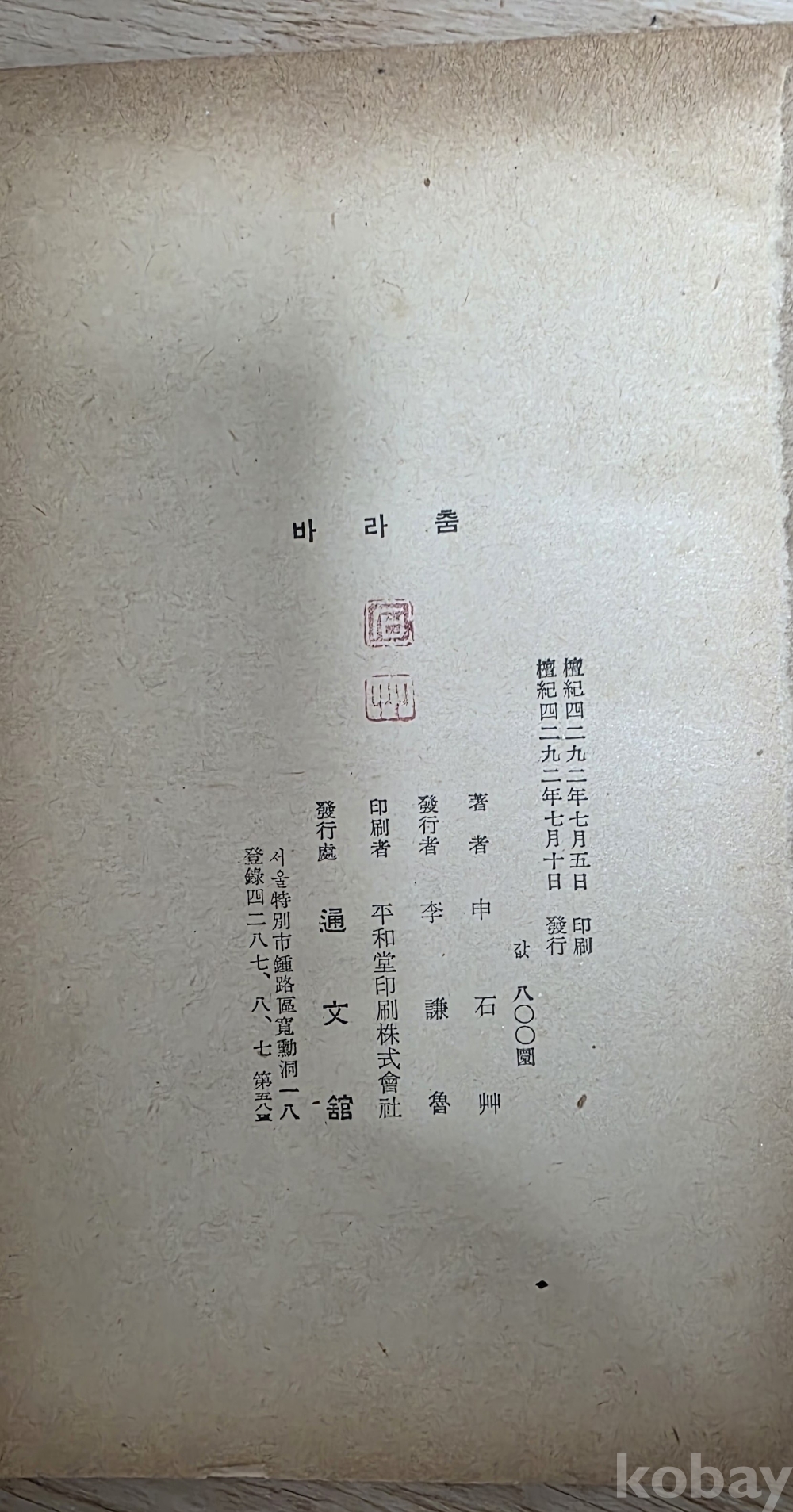 | 제조국 | 한국 | 연대 | 1945년~1959년 |