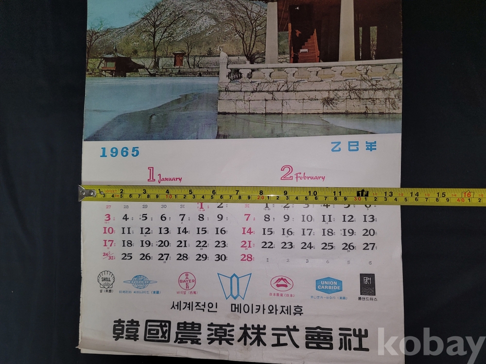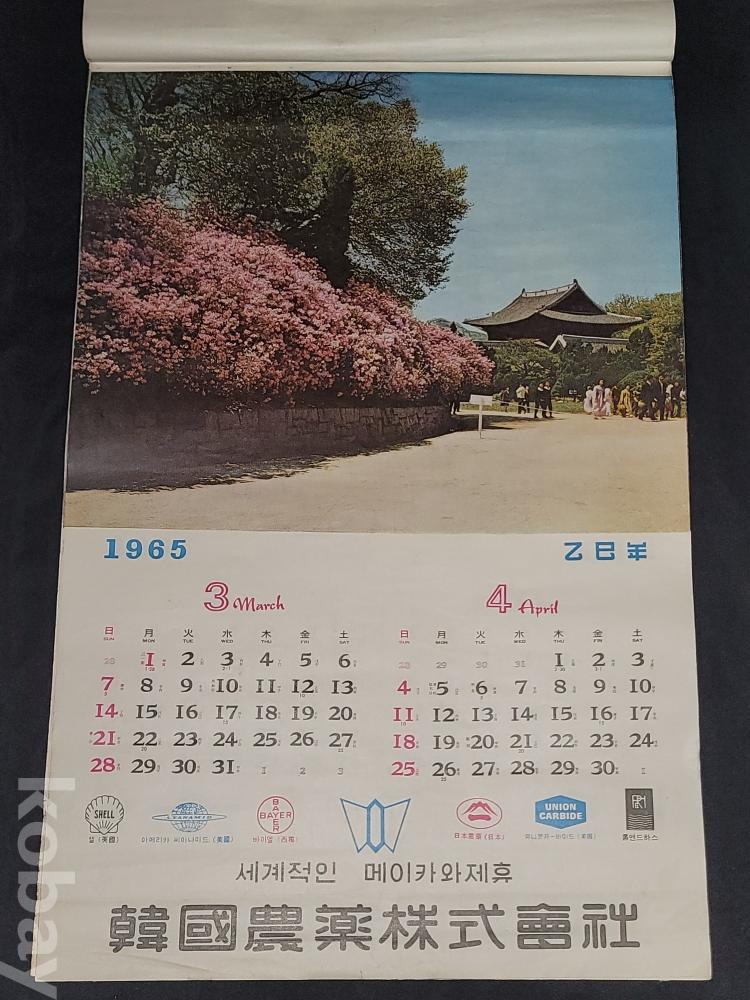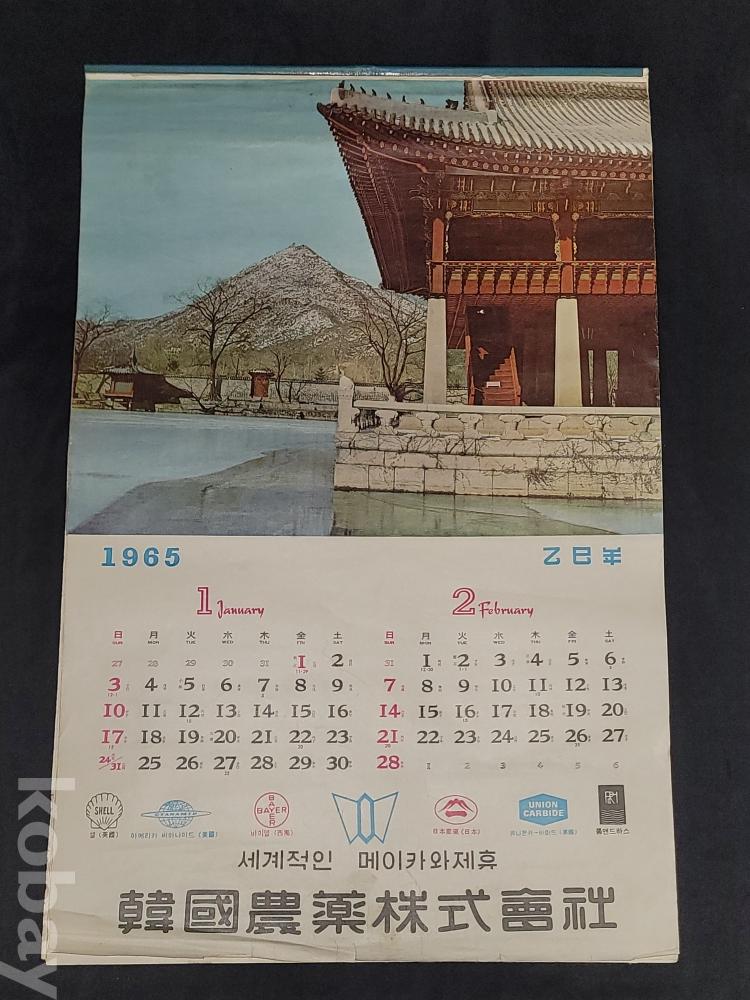 빈티지 세월 감이 느껴지는 희귀한 1965년 韓國農薬株式會社 (한국농약주식회사) 광고용 사진 달력입니다.