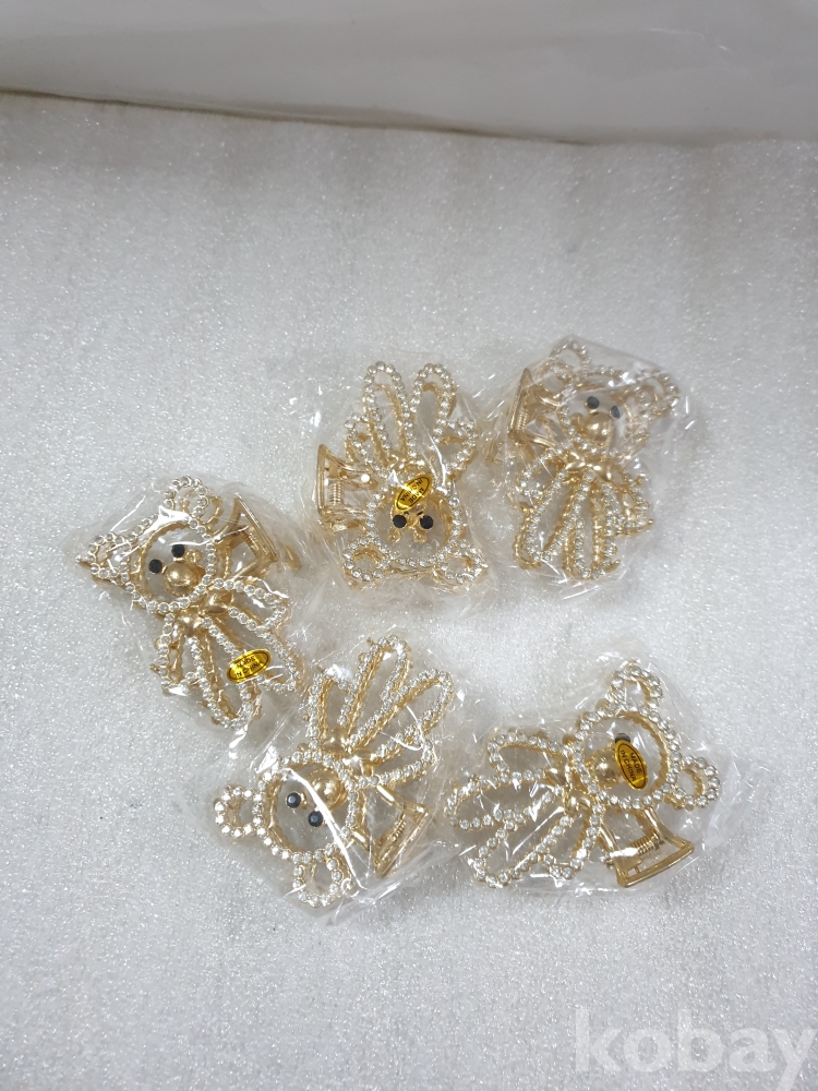 {천원경매}10-0708 곰돌이큐빅집개핀5개