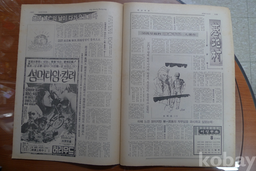 1973년 주간중앙 잡지 - 표지모델 영화배우 최연민 -