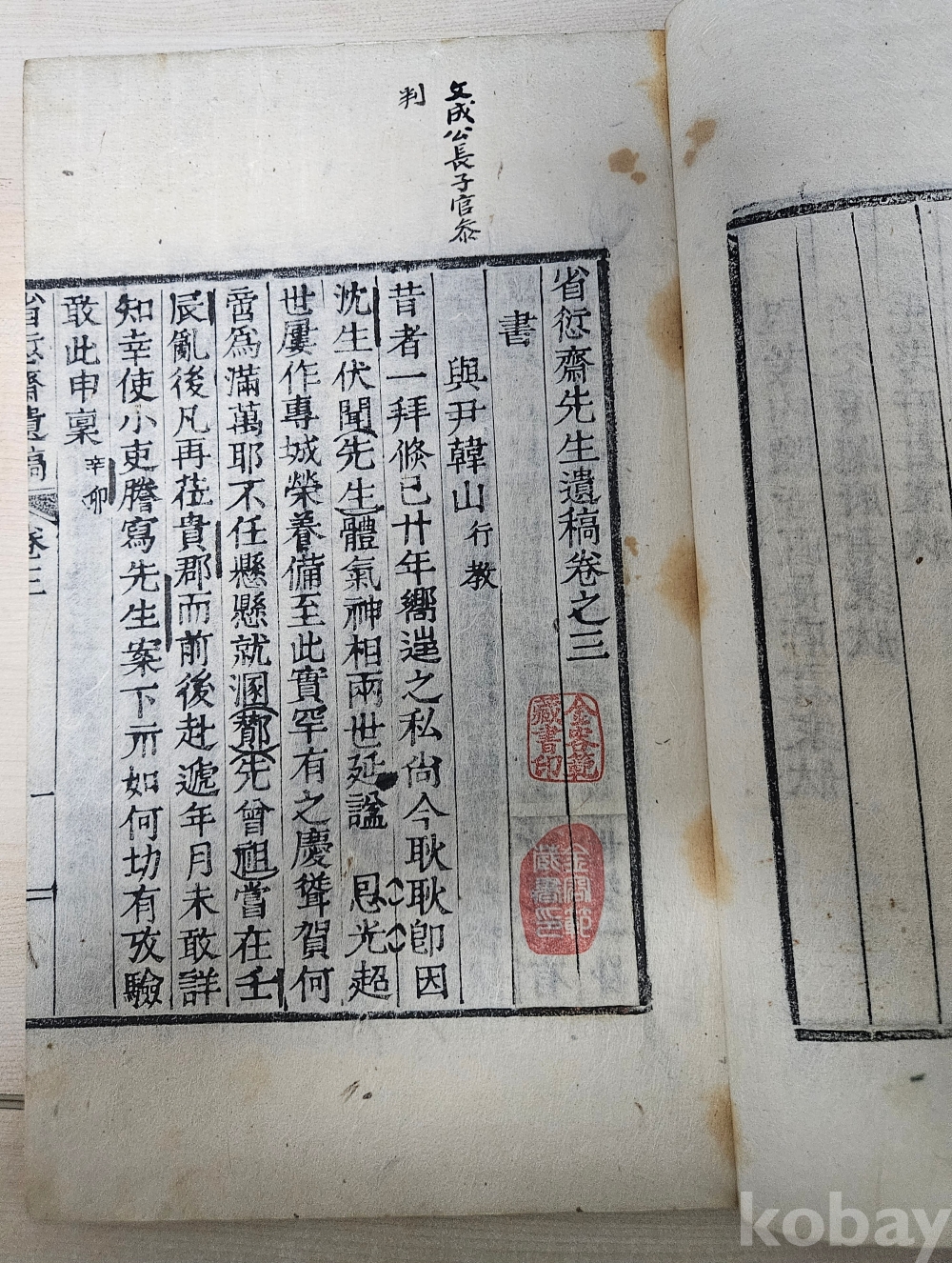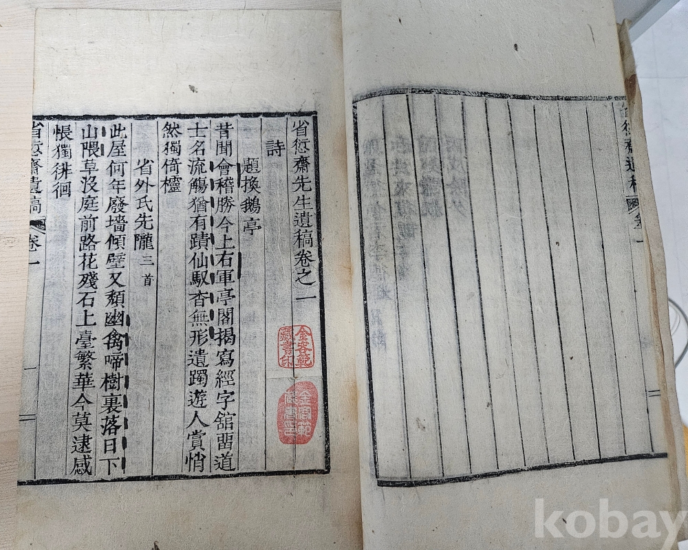 강찬의 詩歌와 散文을 엮어 간행한 詩文集 省愆齊先生文集 목활자본 2책완질