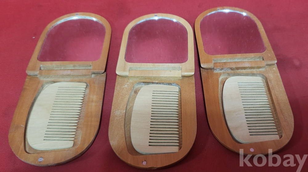 K85 차 19下 스치번 ////// 한중문화관에서 만든 고급나무에 매화문양 빗과 거울이 함께하는 기념품 3개 일괄입니다,