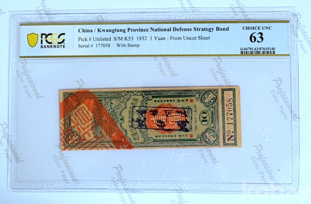 특히 너무귀한 1936년 강소성 국민채권 희귀지폐