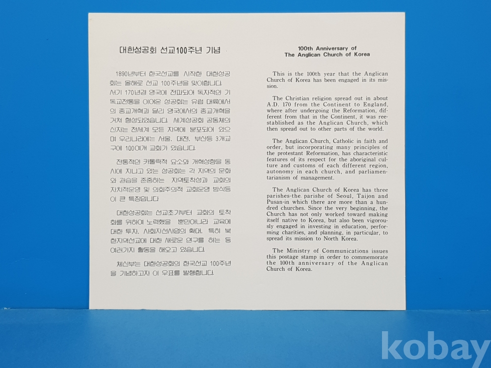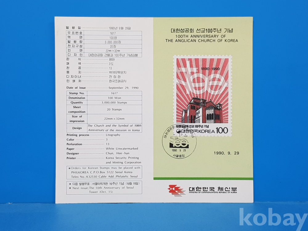 **** 대한성공회 선교100주년 기념/1990.9.29/대한민국 체신부*색 변함, 찢김, 접힘 등 있을 수 있음