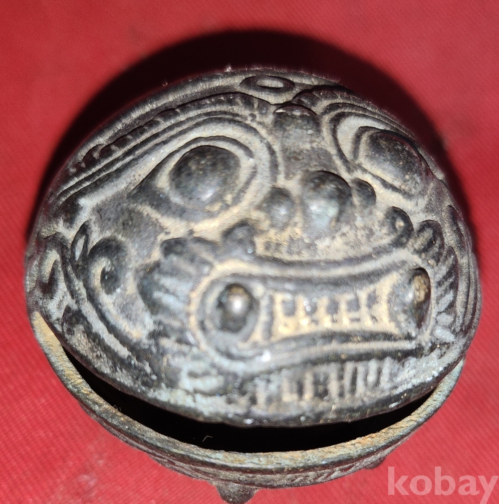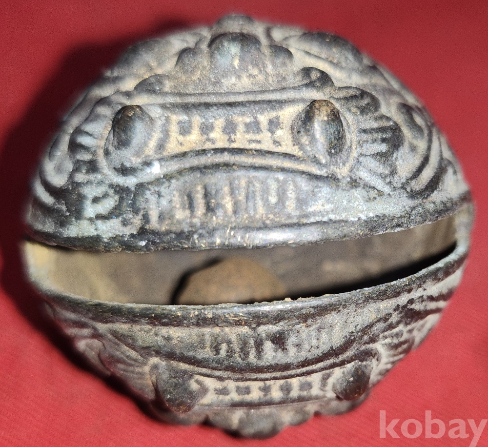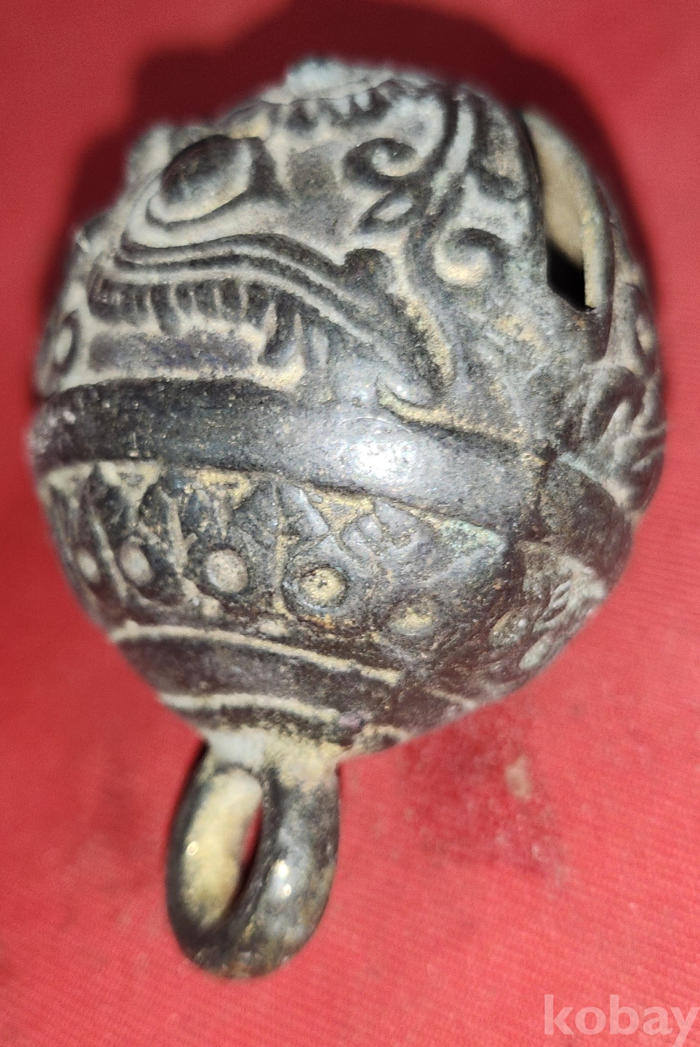 청동으로 만든 양쪽에 귀면(鬼面) 문양 큰 방울입니다,