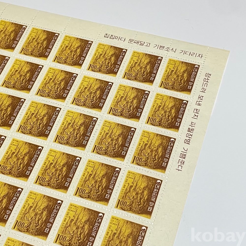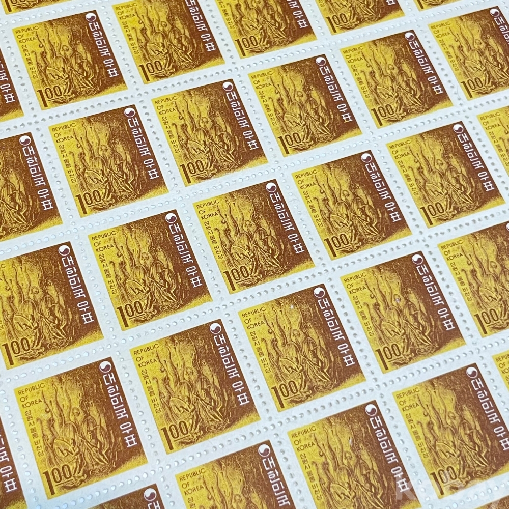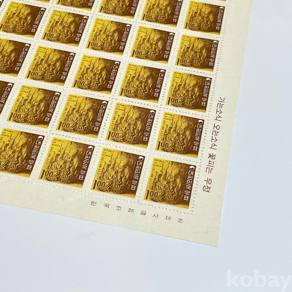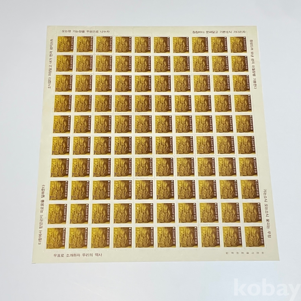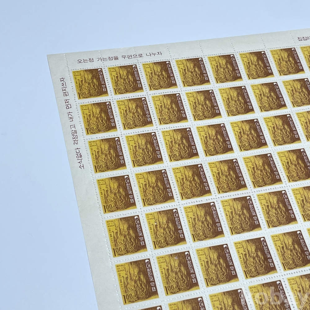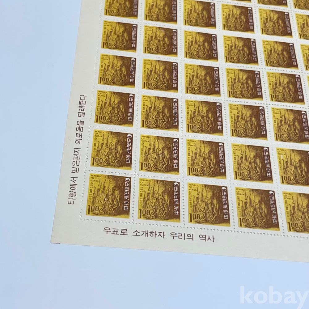 [전지] 1968년, 제2차 국산백지보통 상원사동종비천상 100매 전지