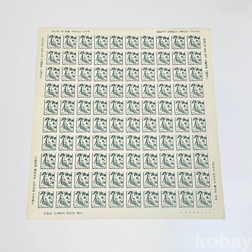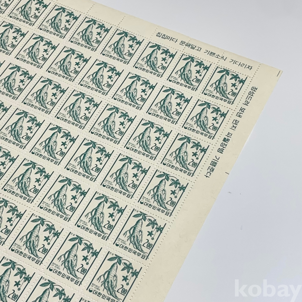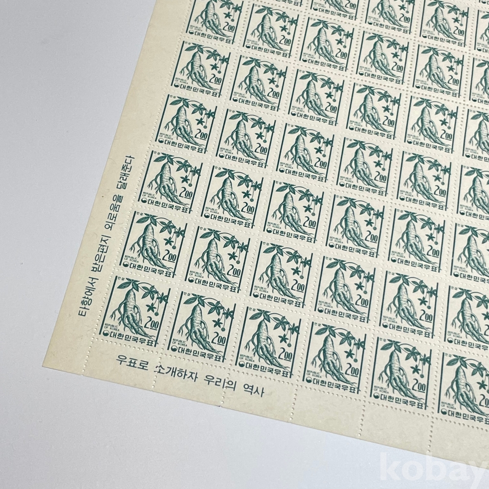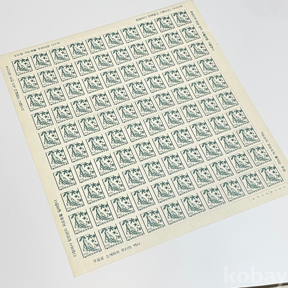 [전지] 1966년, 제2차 국산백지보통 인삼 100매 전지