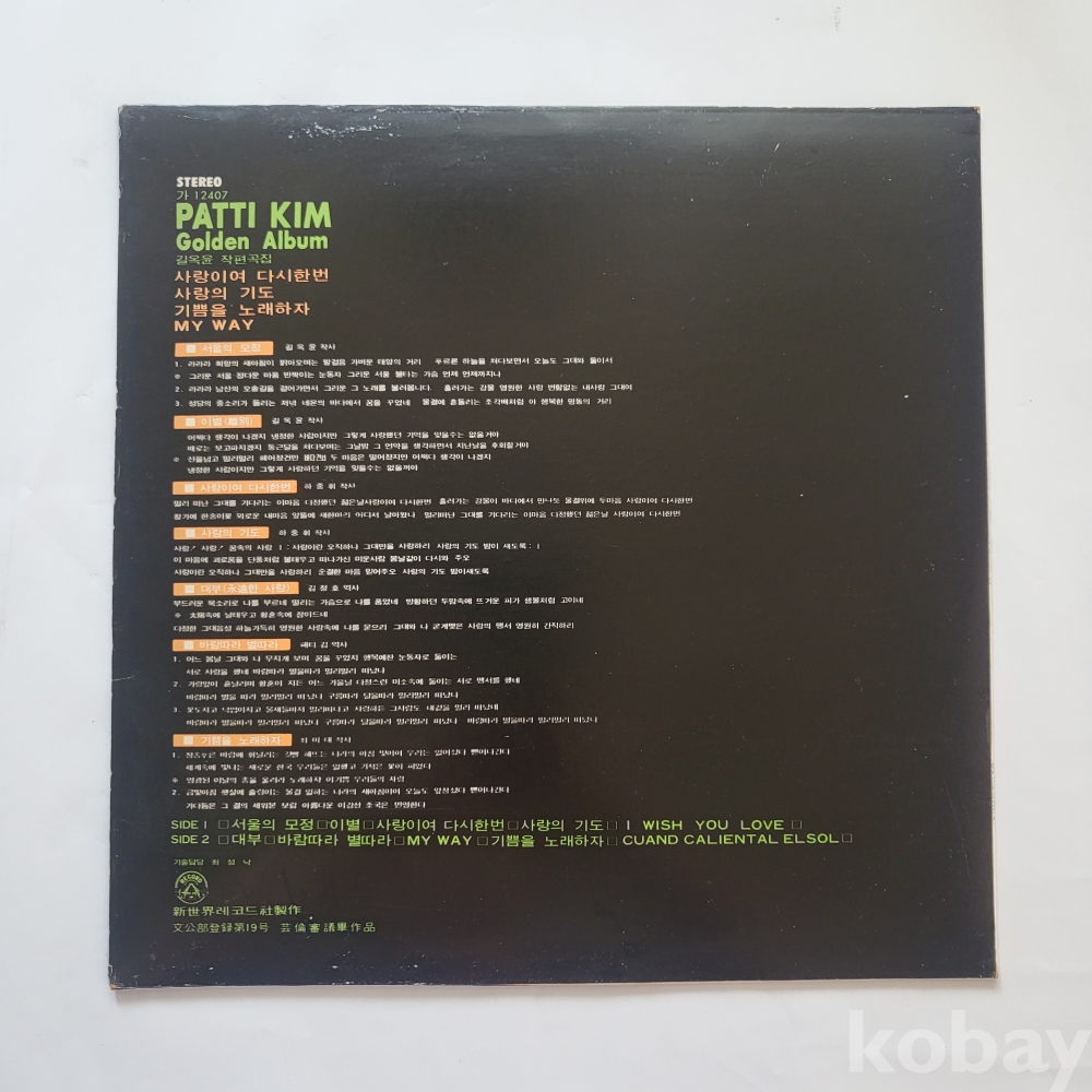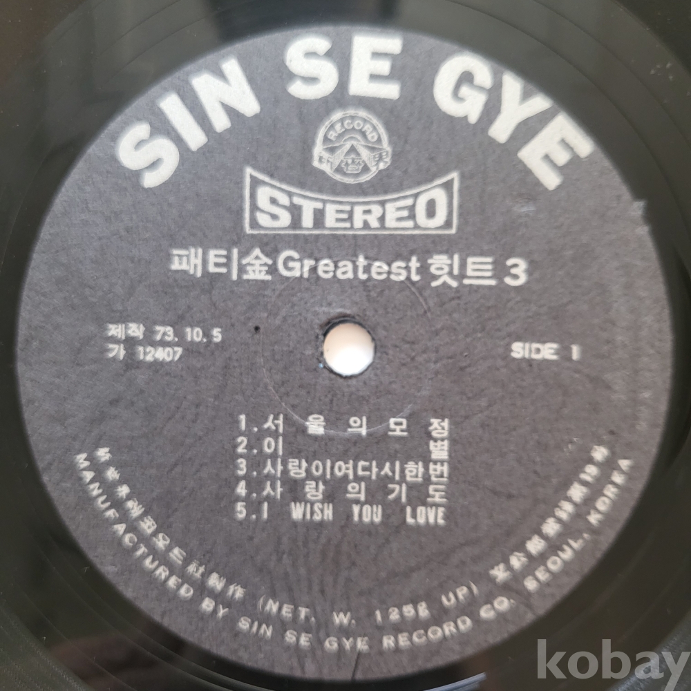 [추억의 희귀 LP 기획전] (패티김) GREATEST HIT VOL.3 / 서울의 모정 ☆ 바람따라 별따라