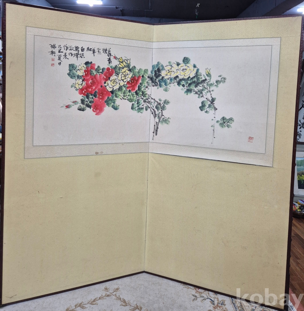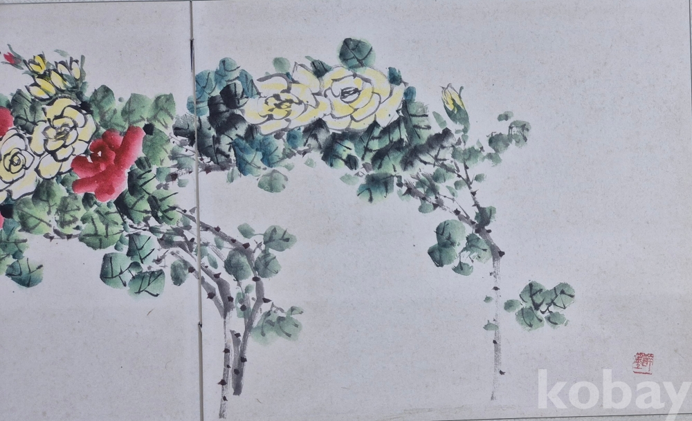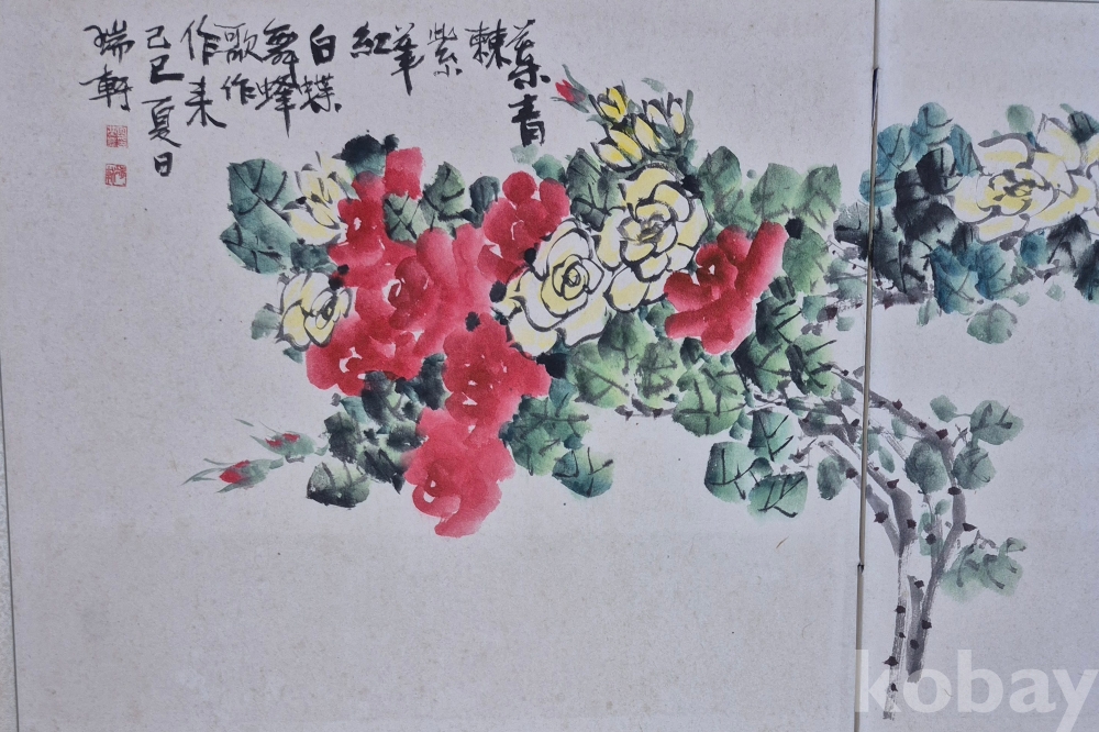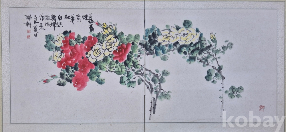 전북지역 유명 여류화가 전기풍'화백님 잘 그려진 보기 드문 아름다운 장미 대형 그림'이오니 작품