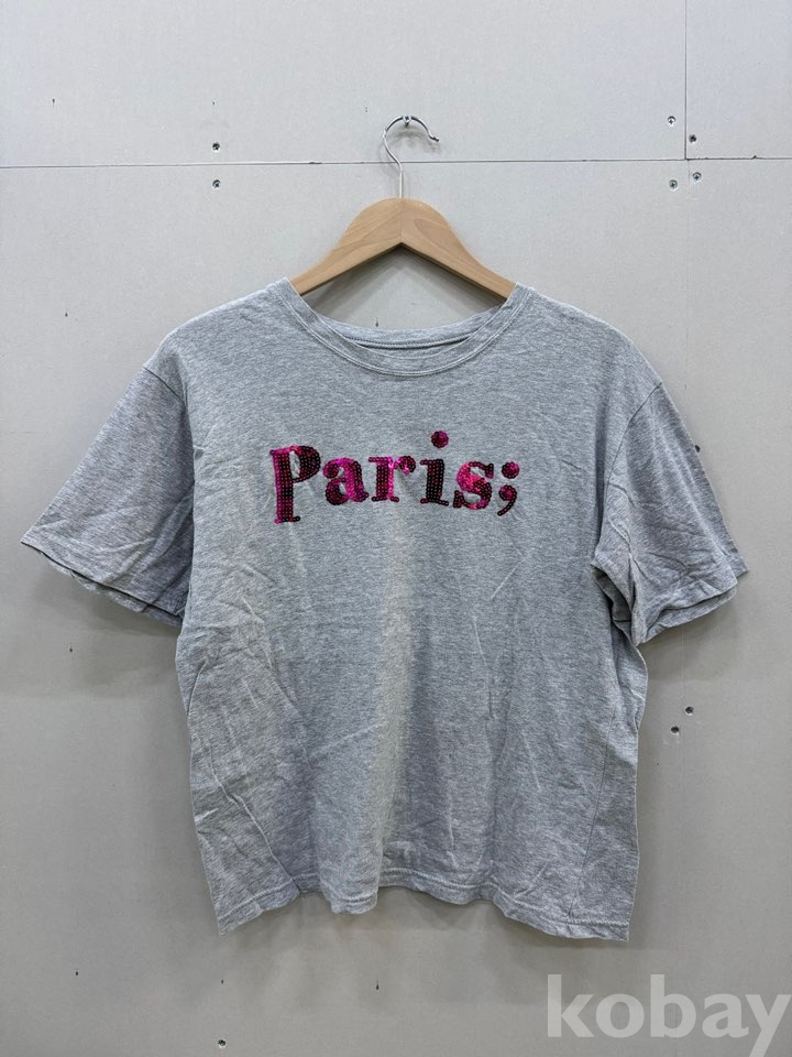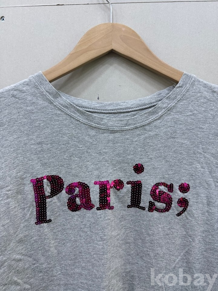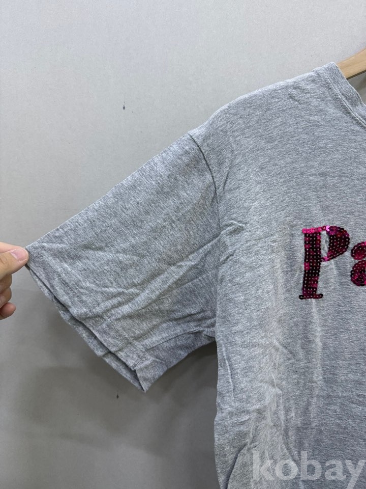 [천원옷장] #102 스팽클 여성 그레이 레터링 티셔츠 Paris; 반팔 캐주얼 기본티 77