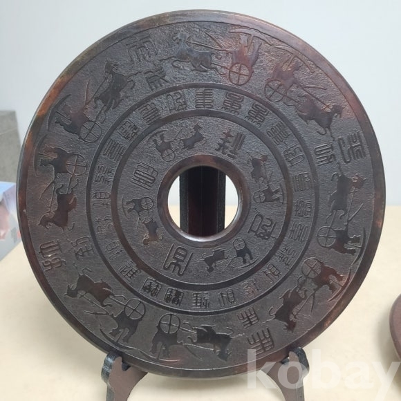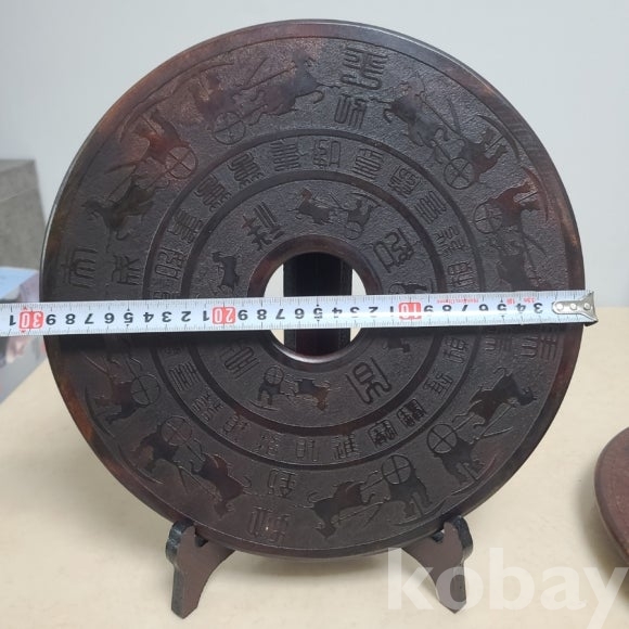 지름 30센티에 이르는 대형급 옥패입니다. 귀하고 단단한 옥을 잘 선별하여 문양을 넣었습니다 크기만큼이나 무겁고 옥이라서 가공이 쉽지 않던 제품입니다. 좌대도 함께 드립니다 시중에서는 이정도의 제품은 이 가격으로 구하기 상품입니다