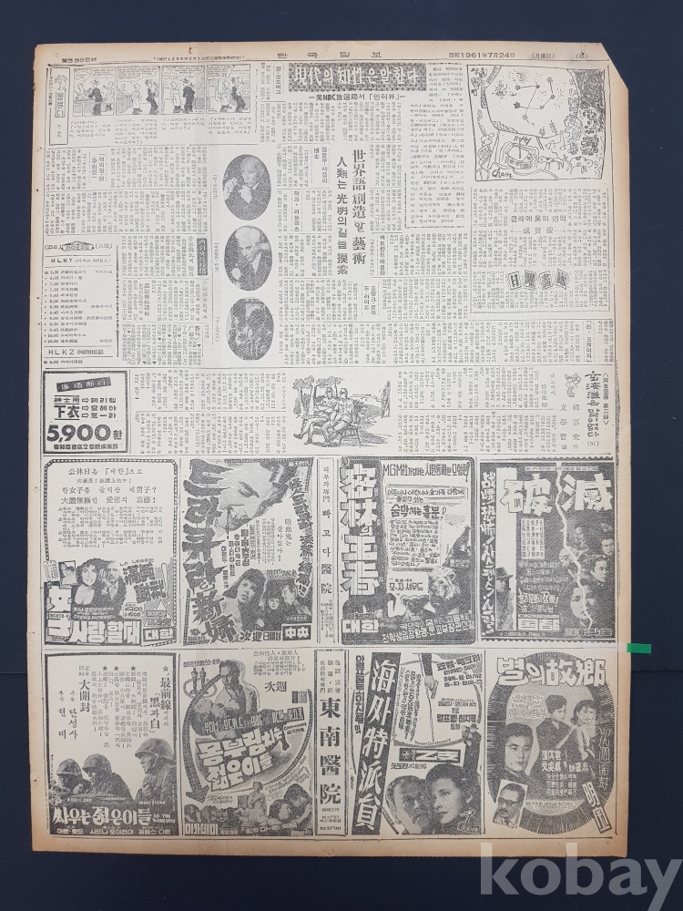 **** 한국일보/1961년 7월 24일/4면*영화상영 광고포함