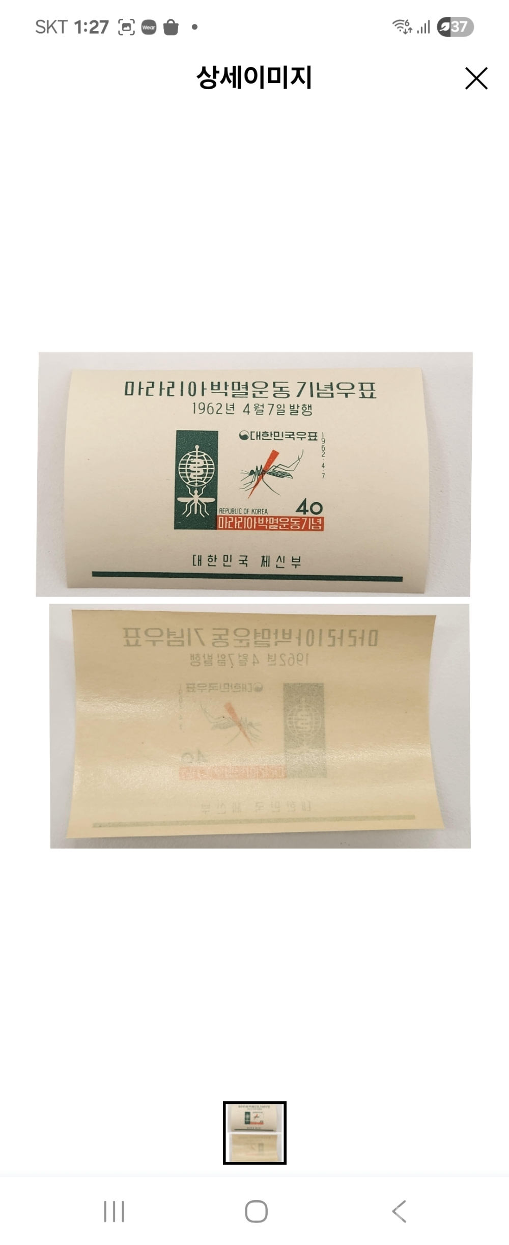 1962년 발행된 말라리아박멸운동기념 소형시트 100매 다발입니다.
