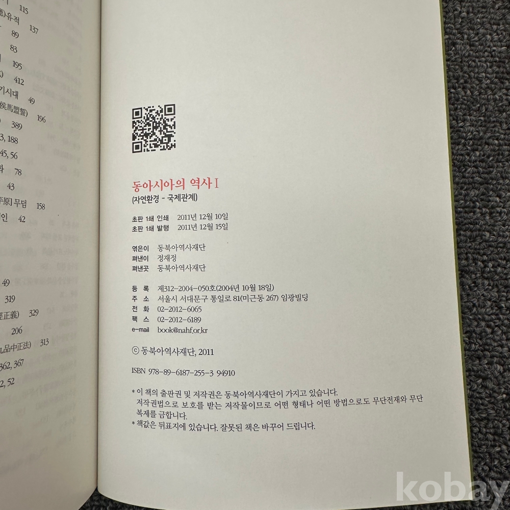 [세게사, 동아시아사] 동북아역사재단 편, <동아시아의 역사 1 : 자연환경-국제관계>, 2011, 동북아역사재단, p. 434, 상태 상급(사진참조)