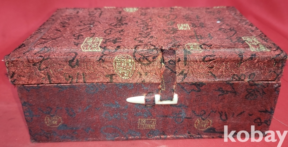 큰 고목과 신선이 도안으로 있으며 뒷면에는 가옥등이 도안으로 있습니다,