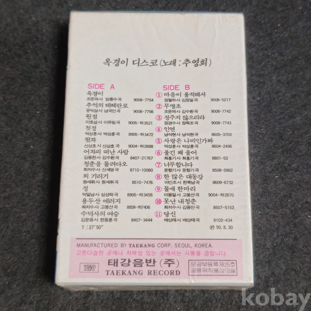 (천원경매) (((카세트테이프))) 국내최초 베르시올겐 독주녹음 - 옥경이 디스코 (노래 추영희) 카세트테이프 (미개봉) (태강음반)