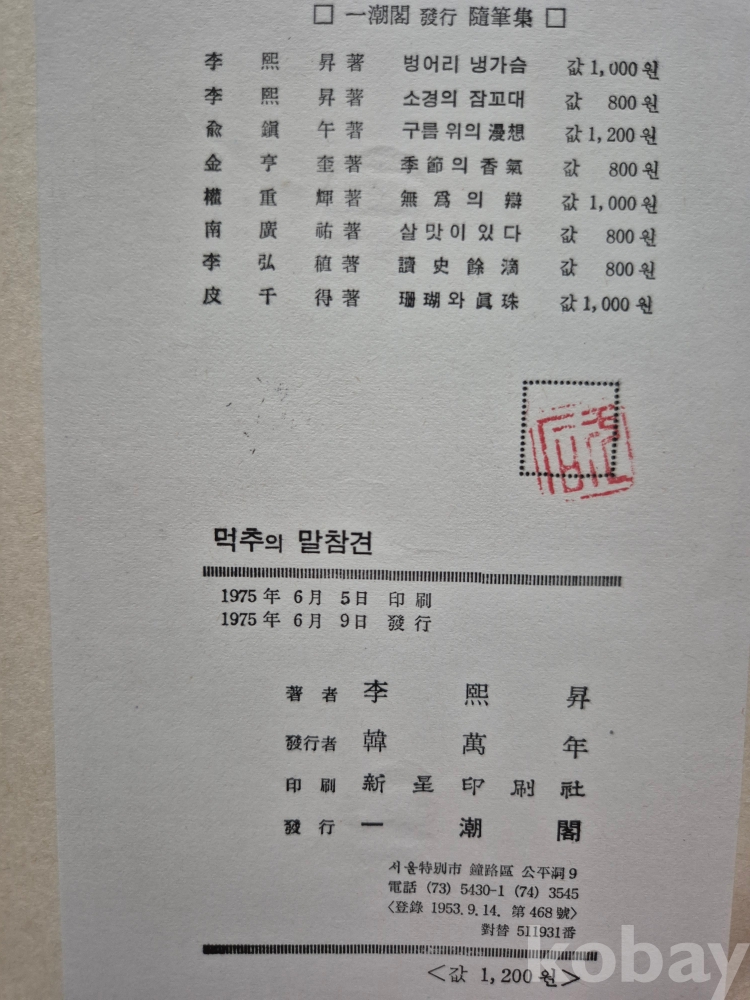 「일조각」에서 발행. 저자 서문과 5부 63의 작품 수록.