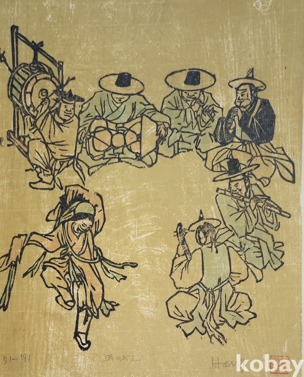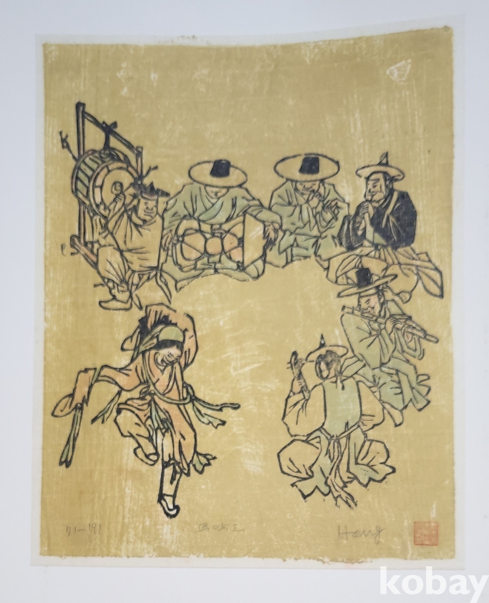 한국풍속판화로 1972년 한국판화 박물관에서 제작한 단원 김홍도 " 무악도"목판화입니다,