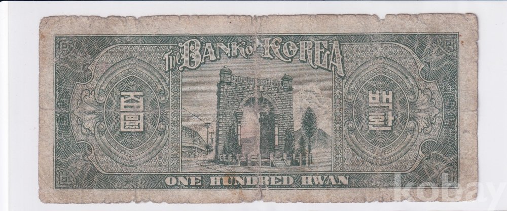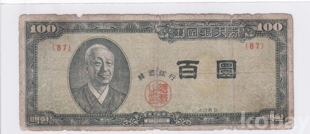 - 한국은행 4288년(1955년) 신 백환 판번호 87번 사용제 지폐