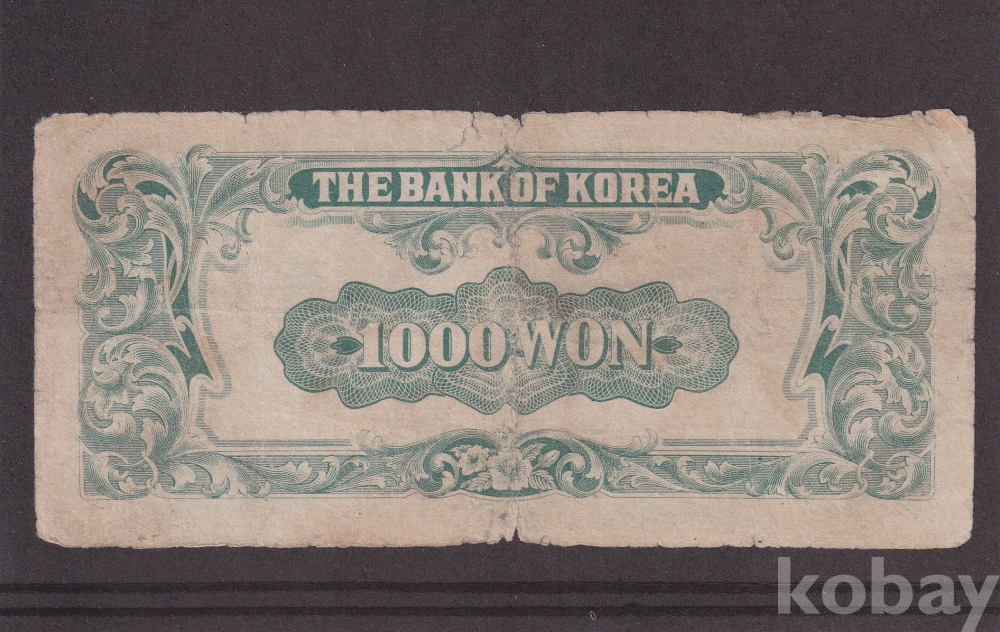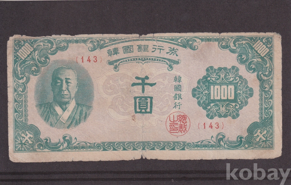 - 최초의 한국은행 천원권 이승만 한복 천원 일본인쇄 판번호 143번 사용제 지폐