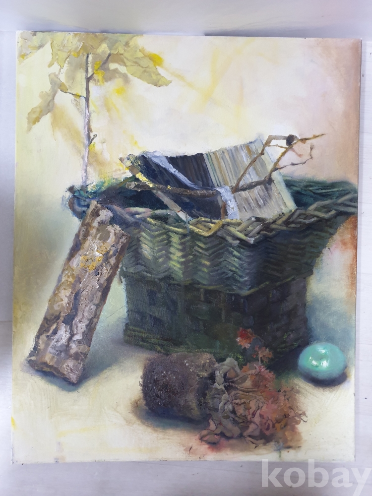 {천원경매} Y-10.0400 유화 바구니안 나무조각 그림 캔버스 액자(53*66, 묶음배송불가, 착불배송)