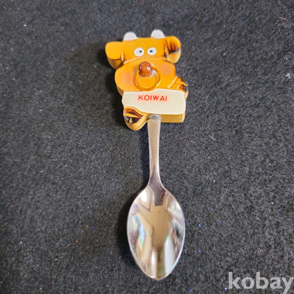 (((술자료/인테리어소품))) 오래전 일본에서만든 귀여운 송아지모습 나무손잡이 티스픈