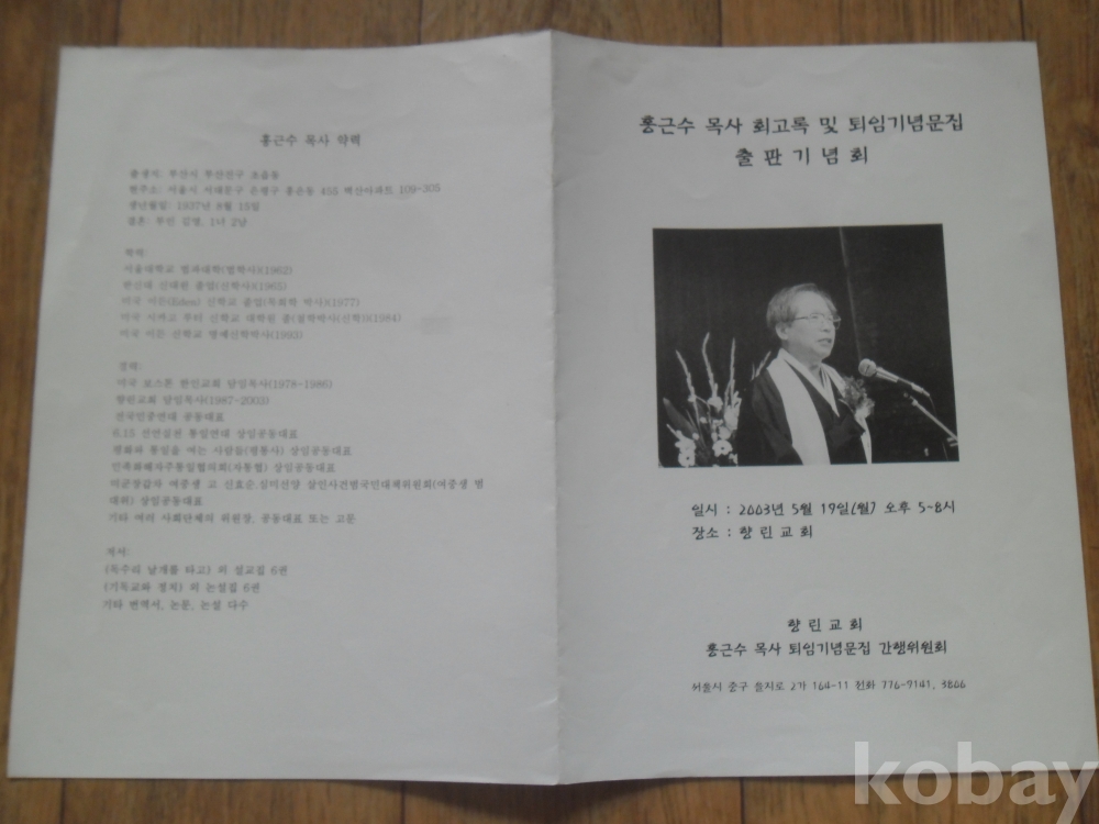 2003년 홍근수 목사 회고록 및 퇴임기념문집 출판기념회