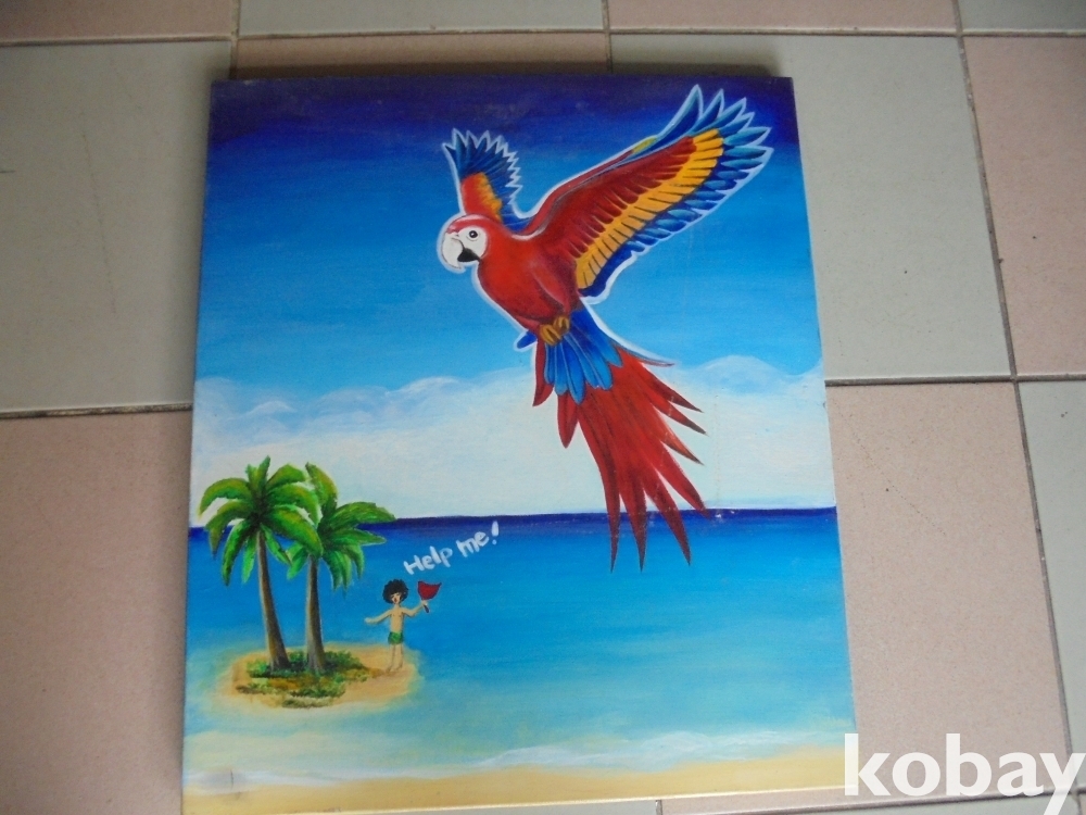 특이한진당채로 특이하게 진하게 앵무새와 외딴바다섬에 도와주셔요 바다풍경이시원한 앵무새와 바다섬 유화판넬