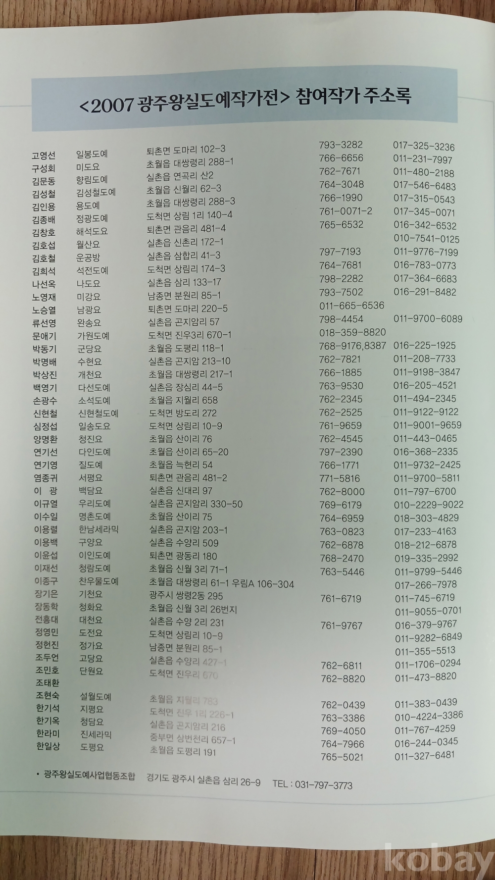 * 2007년 경기도 광주 왕실도예작가전 도록입니다.