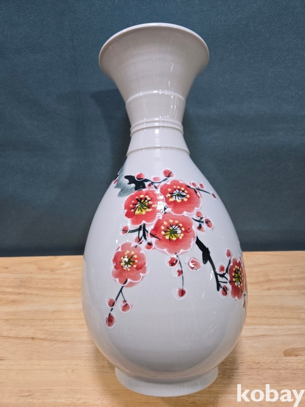 매화 꽃 표현 입이 큰 도자기 입니다.