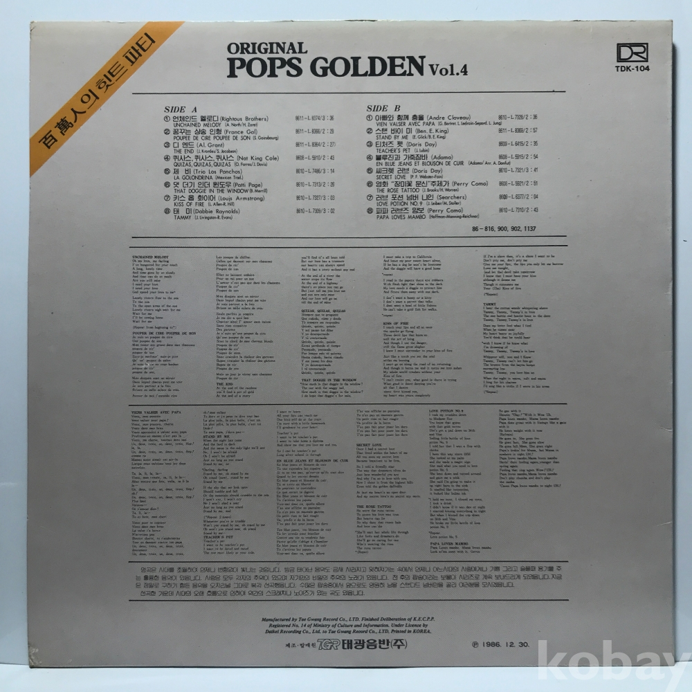 LP 34,810-24 Original Pops Golden 4 . ` 86 태광 자켓 EX+ 알판 EX+