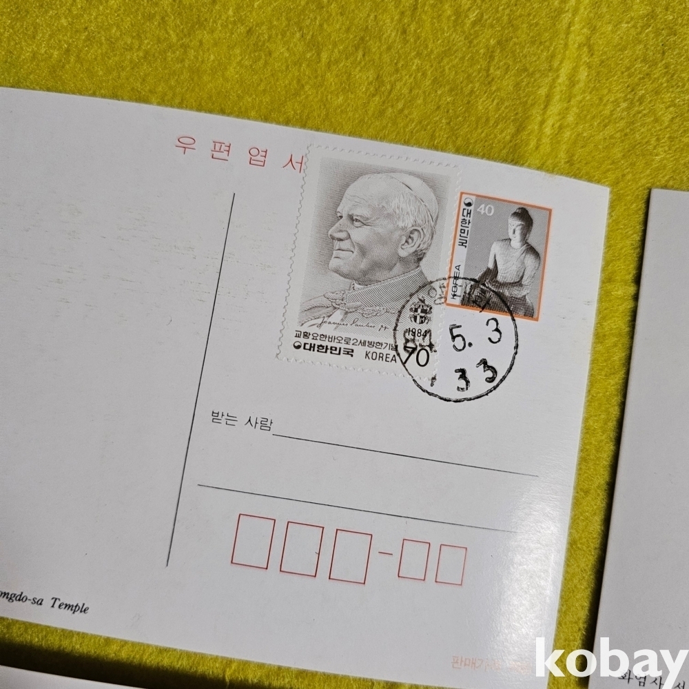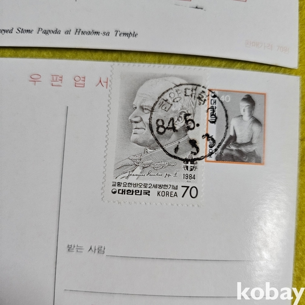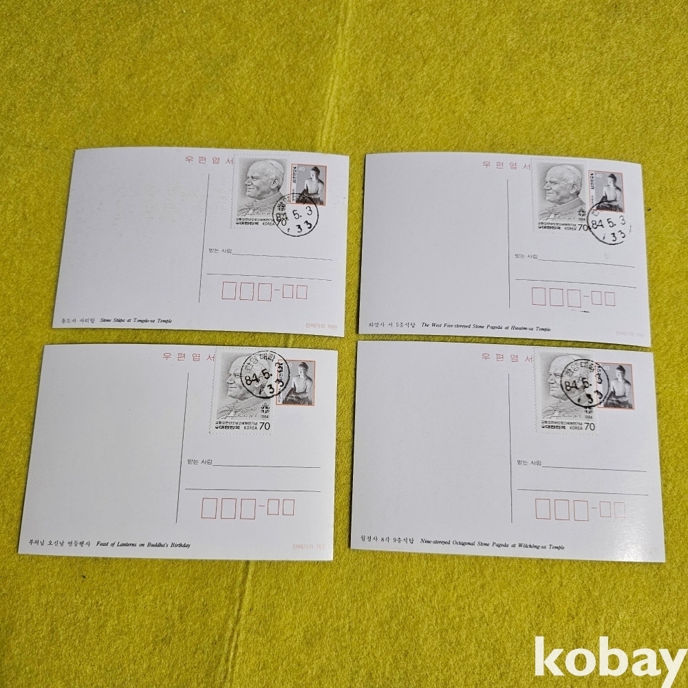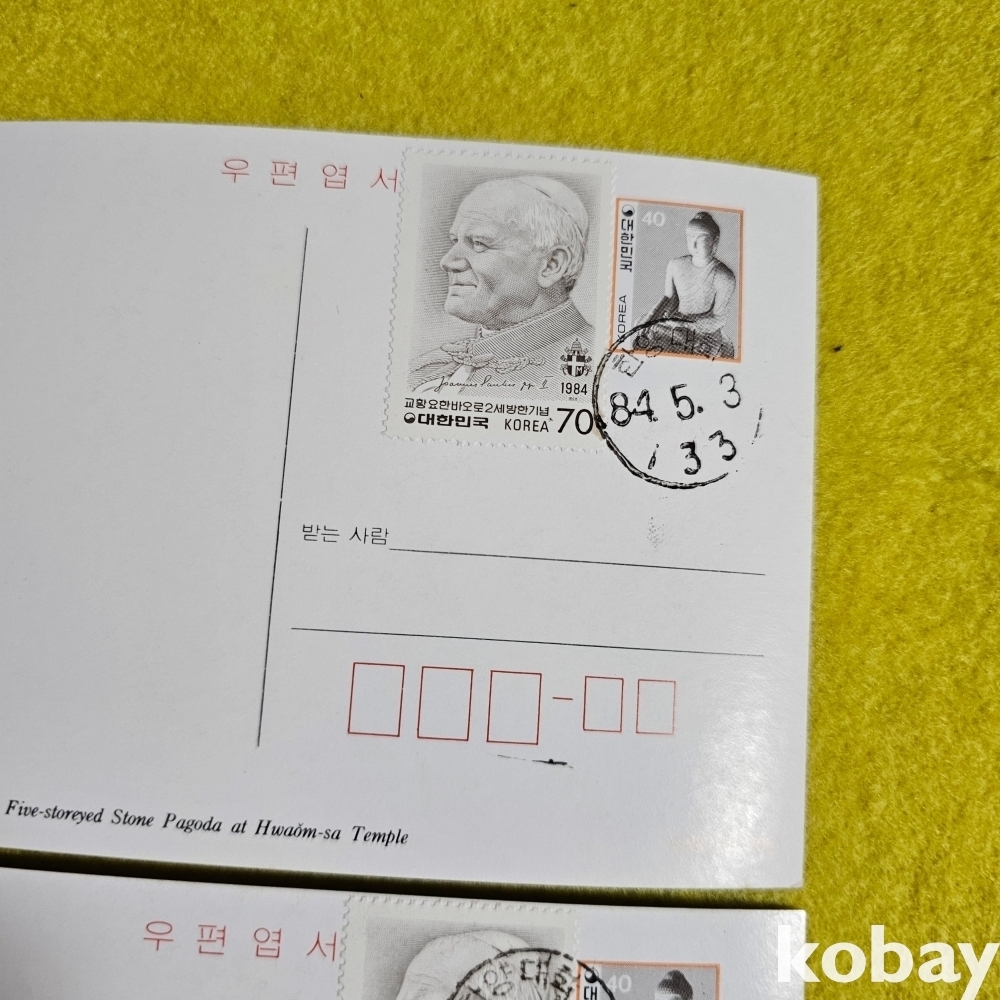(((우취자료/천주교자료/엽서))) 교황바오로2세 방한기념 우편엽서 (우표부착 한양대학 84년 초일) 4종