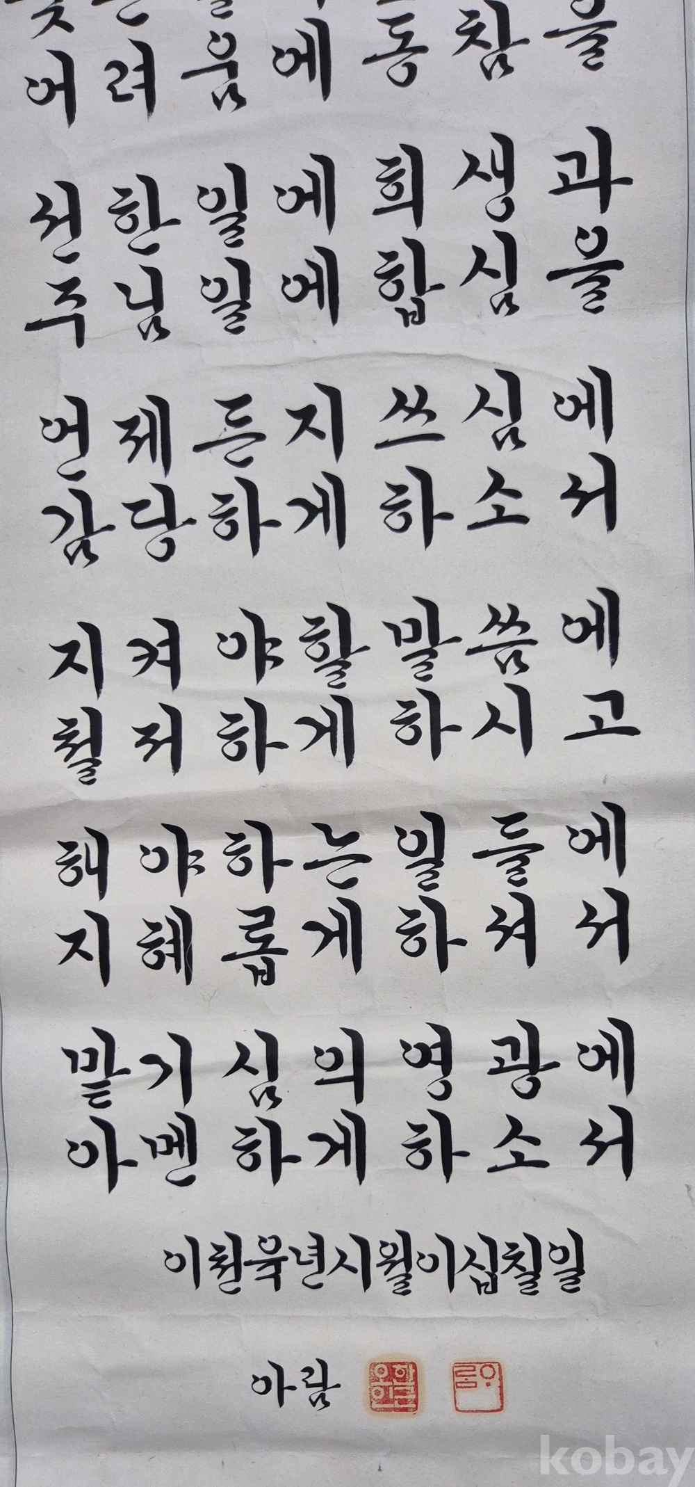 멋진 성구 한글 서예 작품'이오니 작품 이미지상 수결 및 낙관'등 두루 잘 참조하시고 본 작품의 가치를