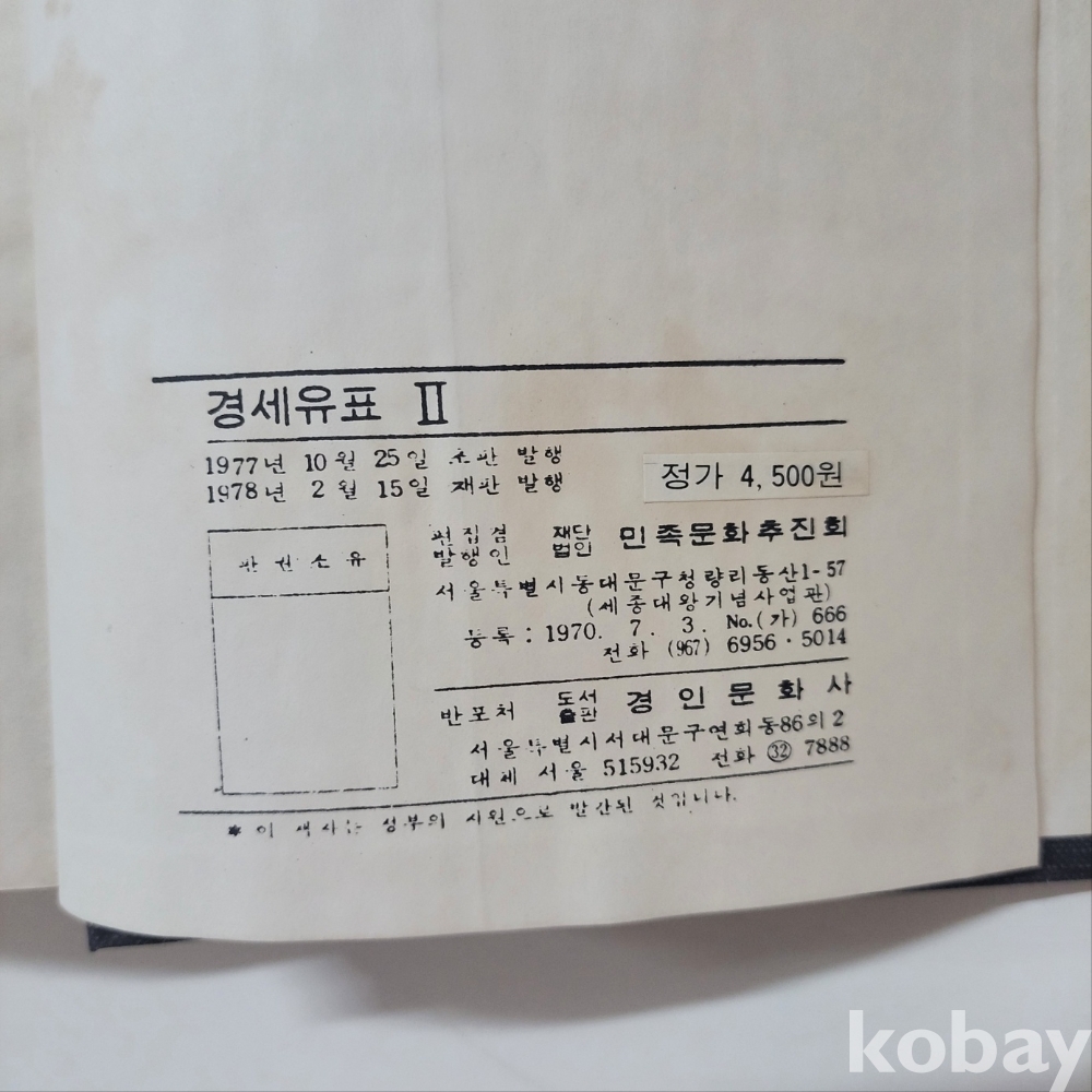 [만원경매] 1978년 발행 국역 경세유표 / 민족문화추진위원회 발행입니다.