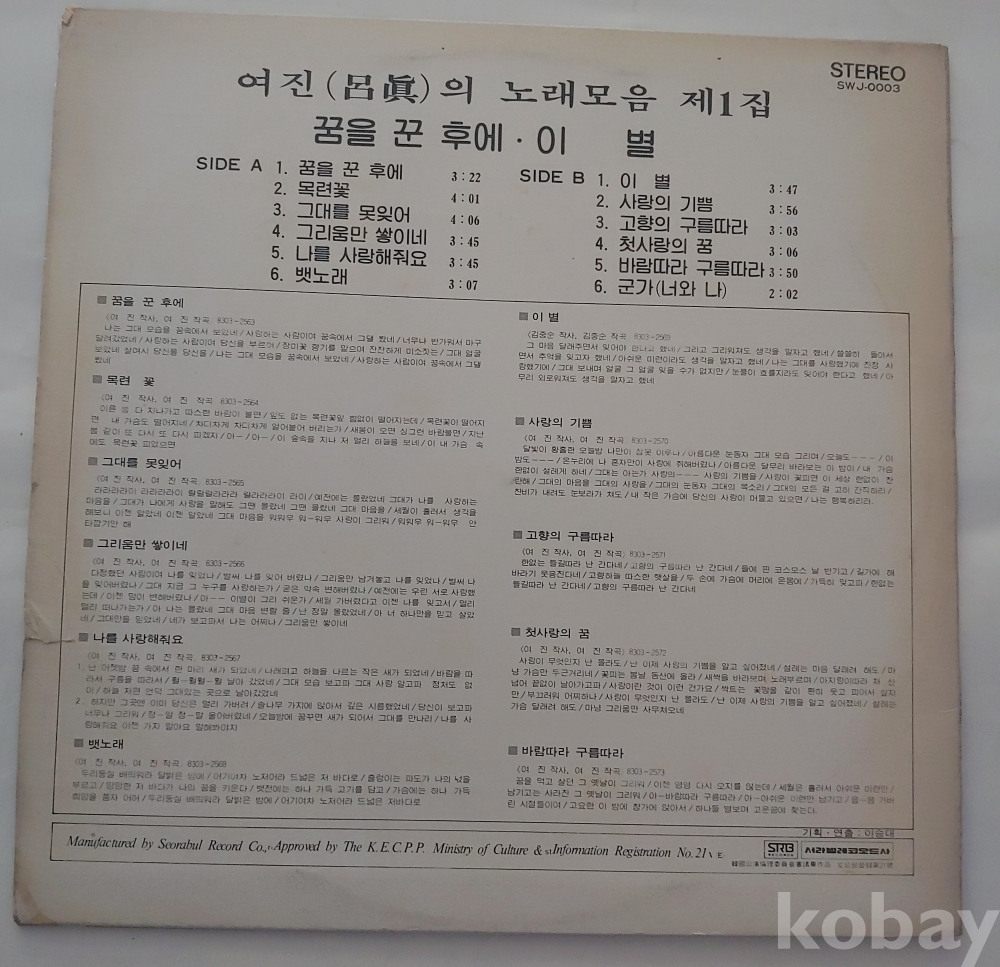 여진Lp/꿈을 꾼 후에,그리움만 쌓이네