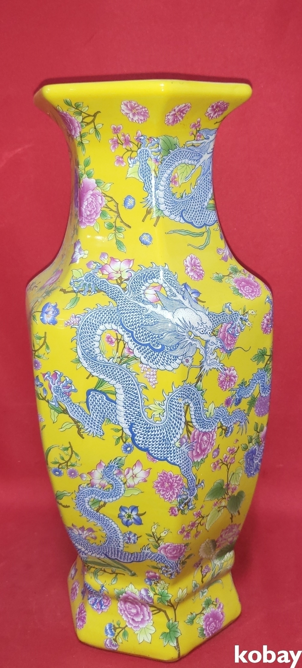대청강희연제 황지 화용(花龍)문양 6각 광구병입니다,