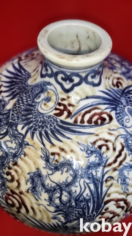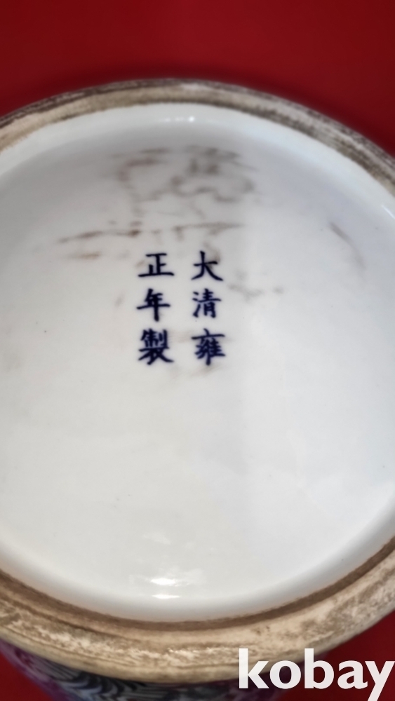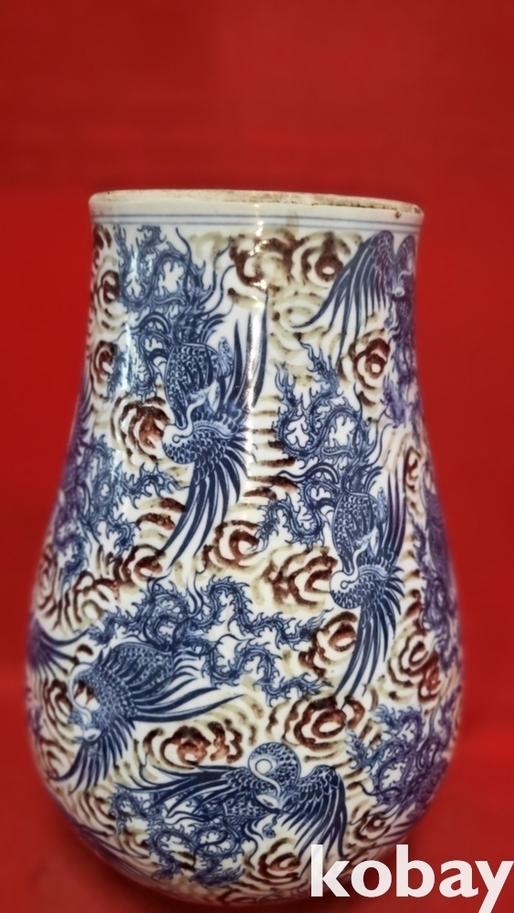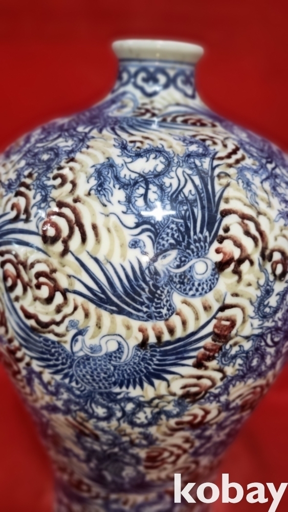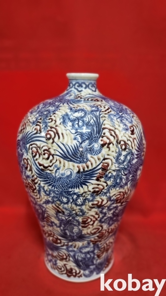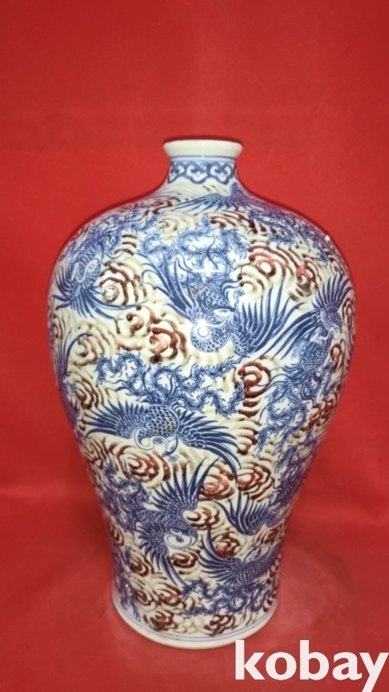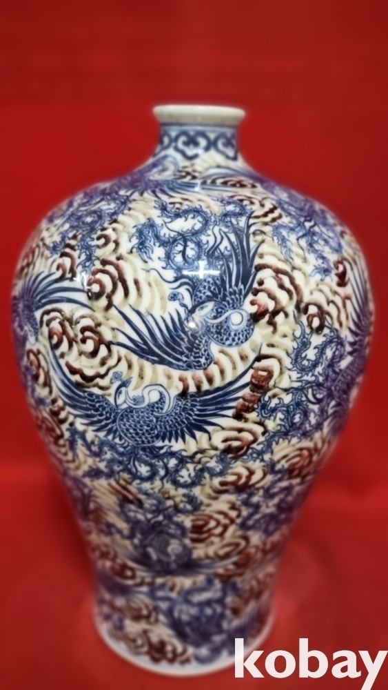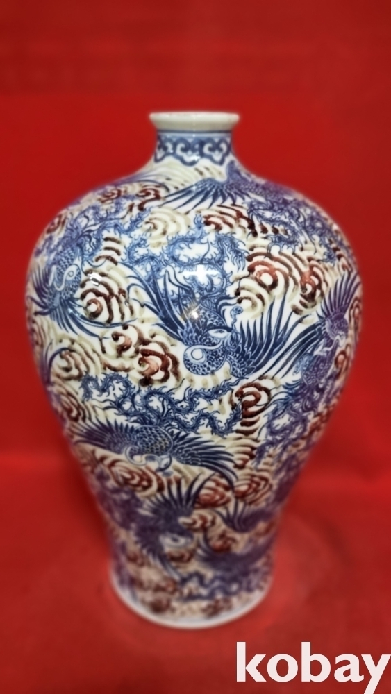 대청옹정연제 관지 청화 유리홍 구름과 학(雲鶴)문양 큰 매병입니다,