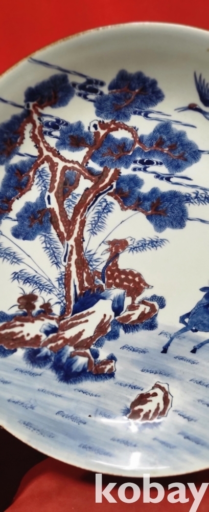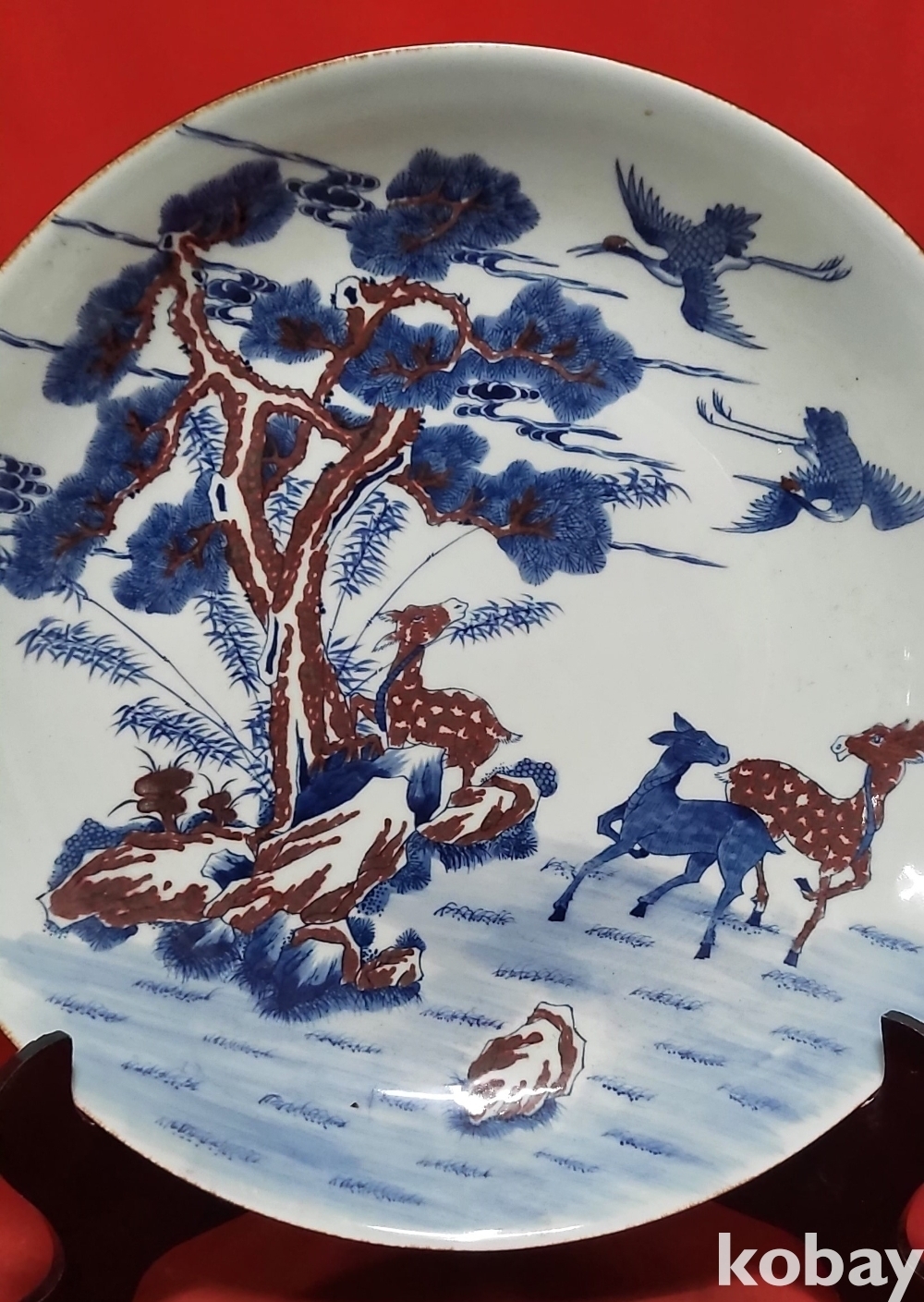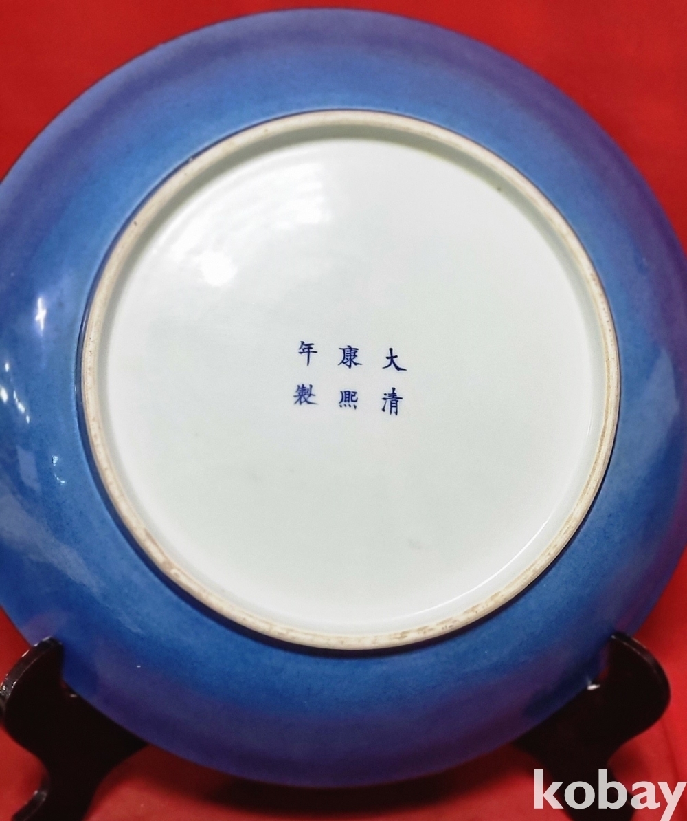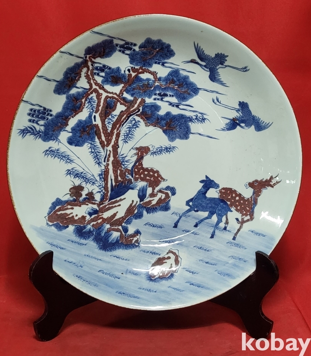 대청강희연제 청화 유리홍 장생(長生)문양 큰 대반입니다,