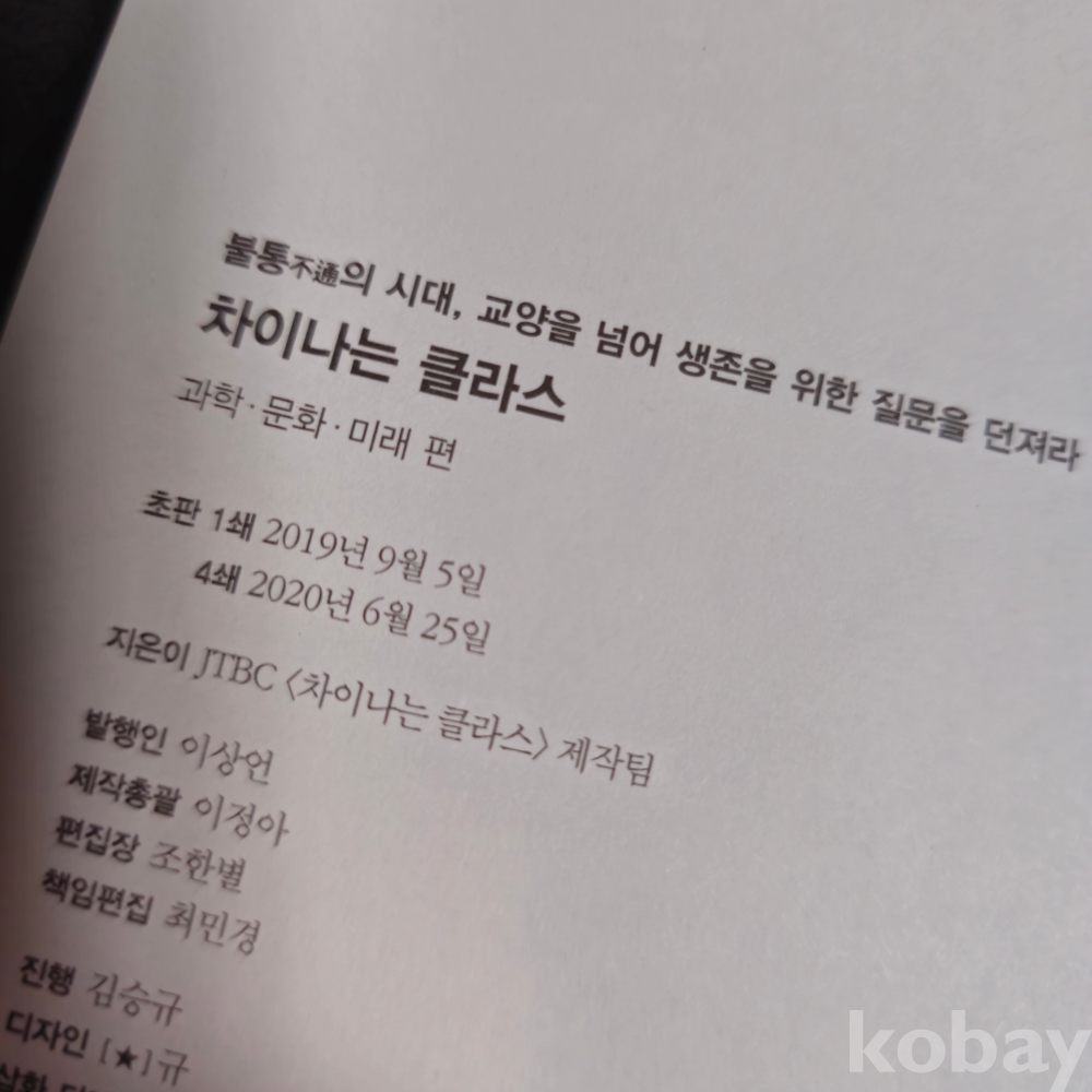 (천원경매) (((서적))) 차이나는 클라스 (과학/문화/미래 편) JTBC 차이나는 클라스 제작침 지음 (2020년 초판 4쇄)