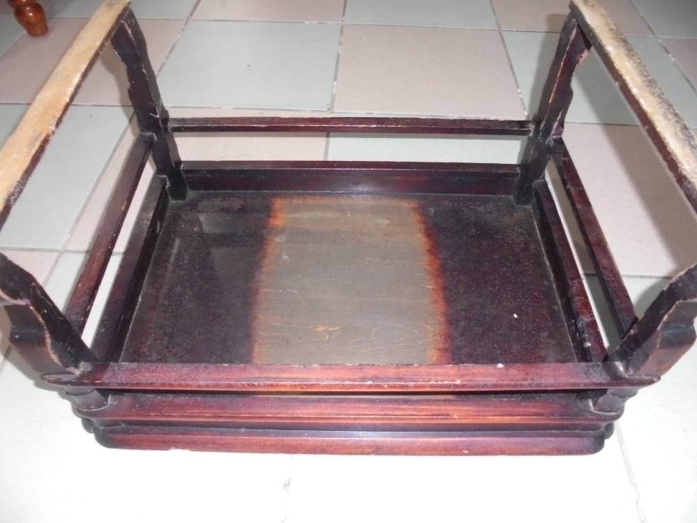 부귀모형에 옻칠하고 통판으로 튼튼하게 잘만들었으나 가상자리가 금이간곳있는 오래된 전통적인 손님사각상