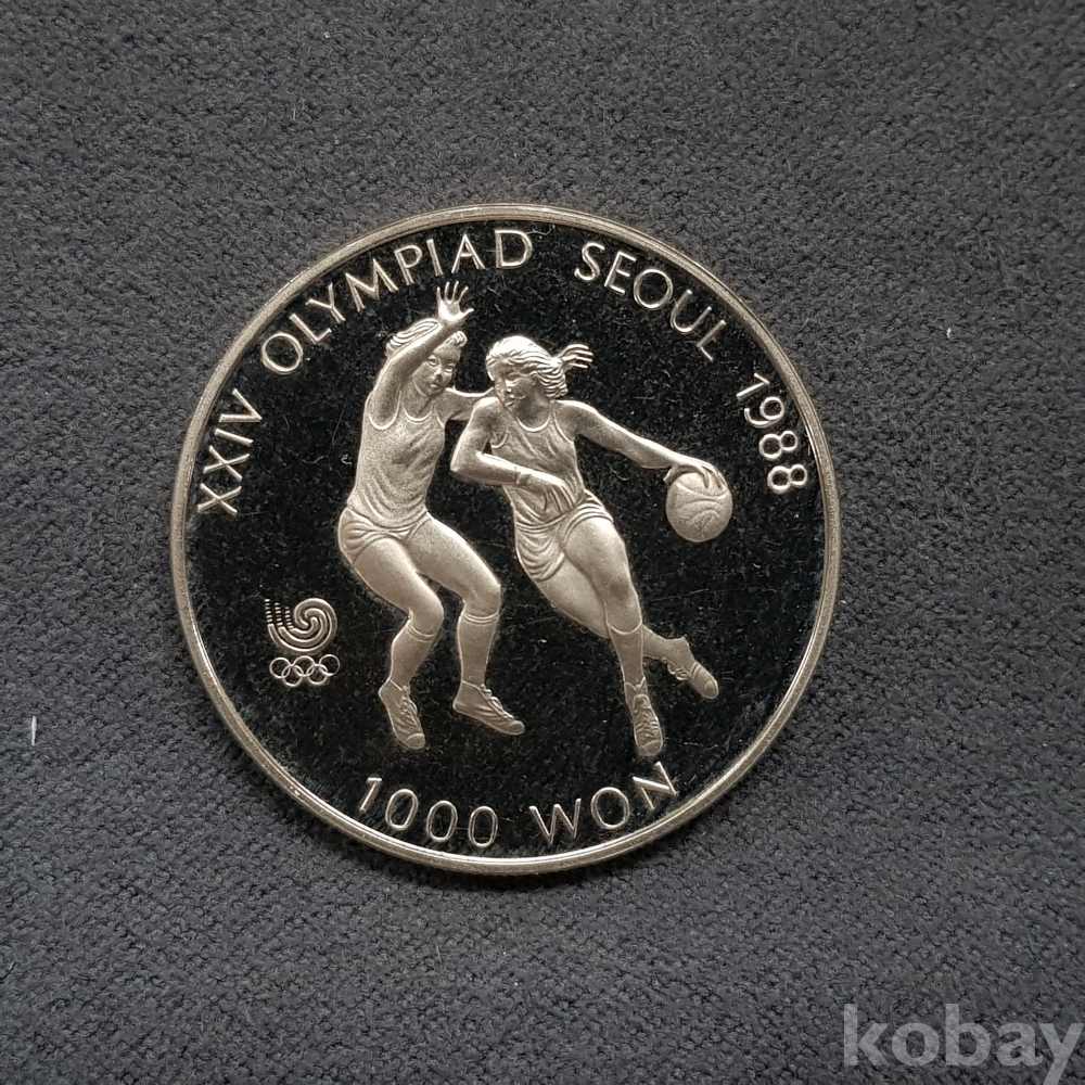 - 서울 올림픽 대회 1차 농구 무광프루프 천원 기념주화