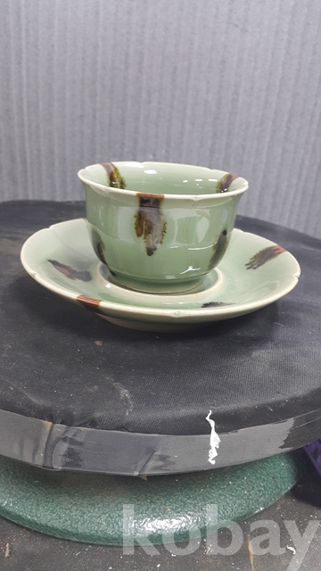 c-191.안에거북이가조각된 깔끔한 청자송대용천요찻잔셋트