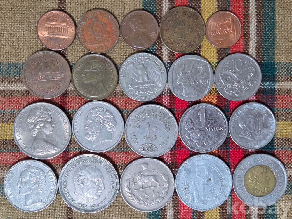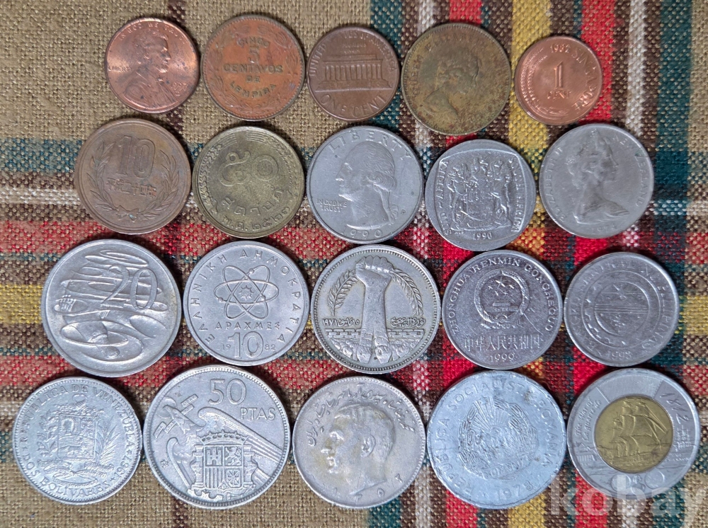 20점의 외국 동전들입니다