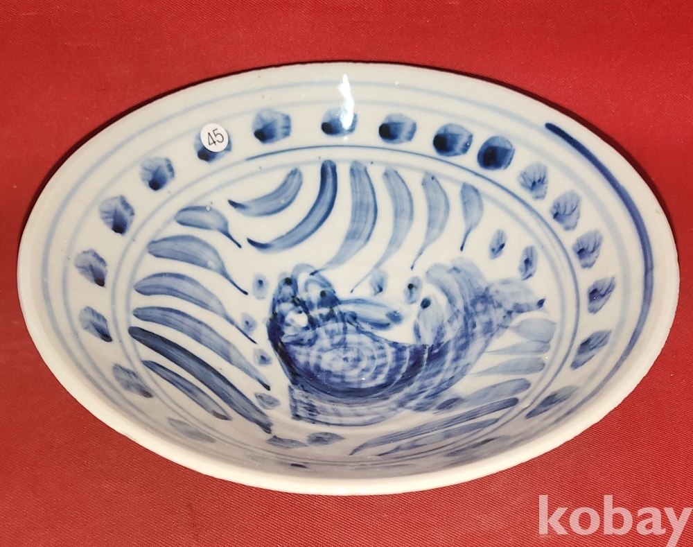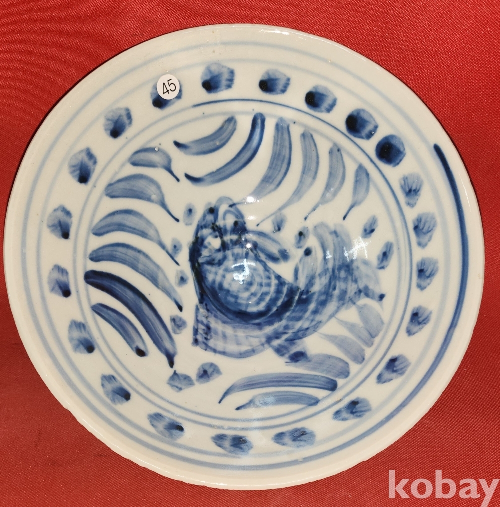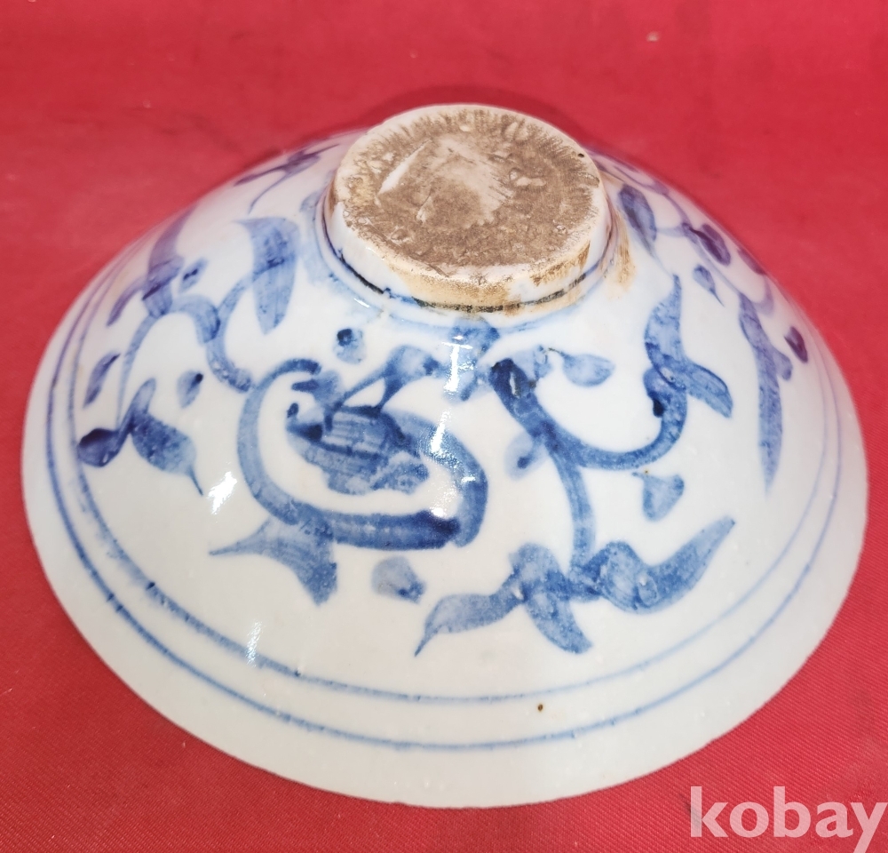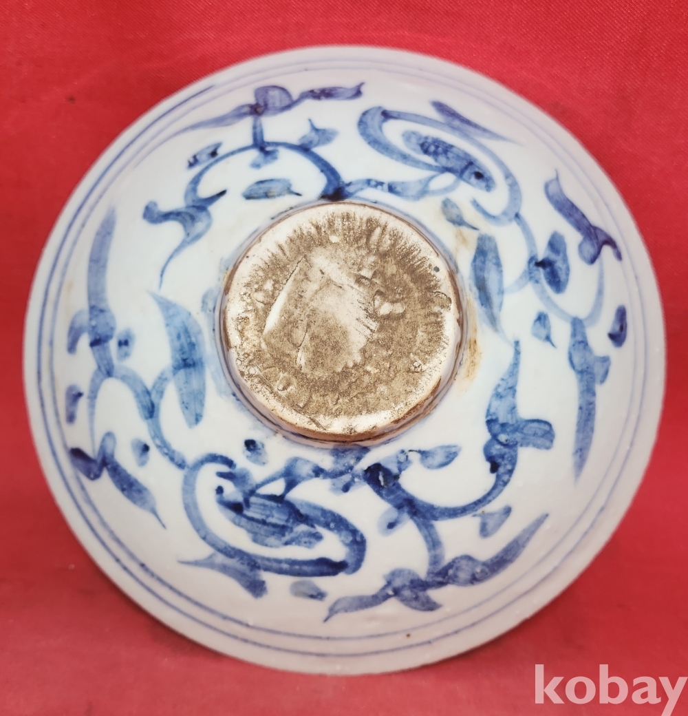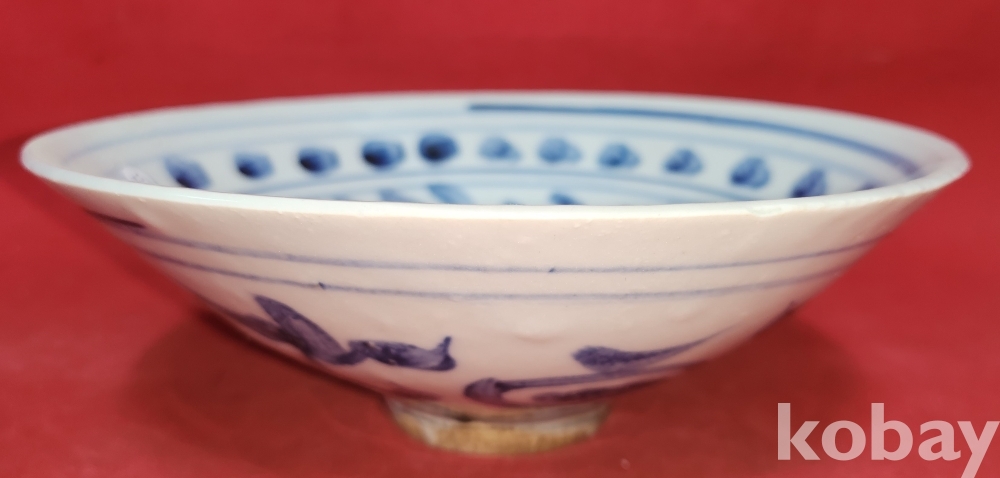 연대좋은 소마리 청화 물고기 문양 다완입니다, 기물 전체에 도안이 가득한 명품입니다,